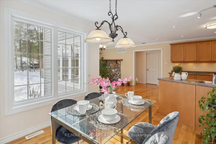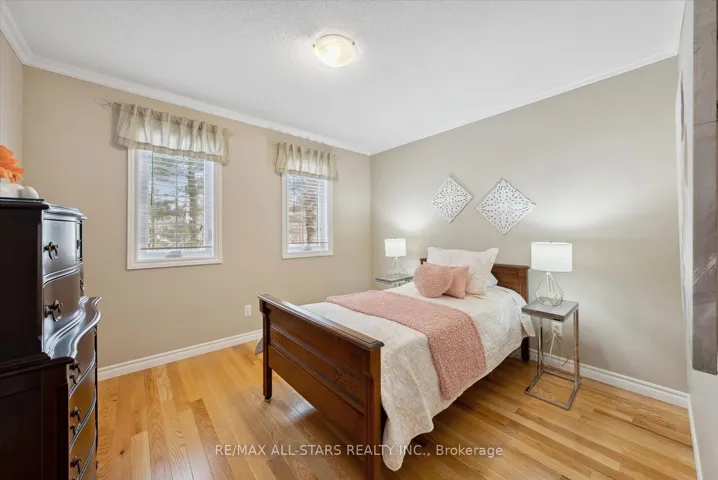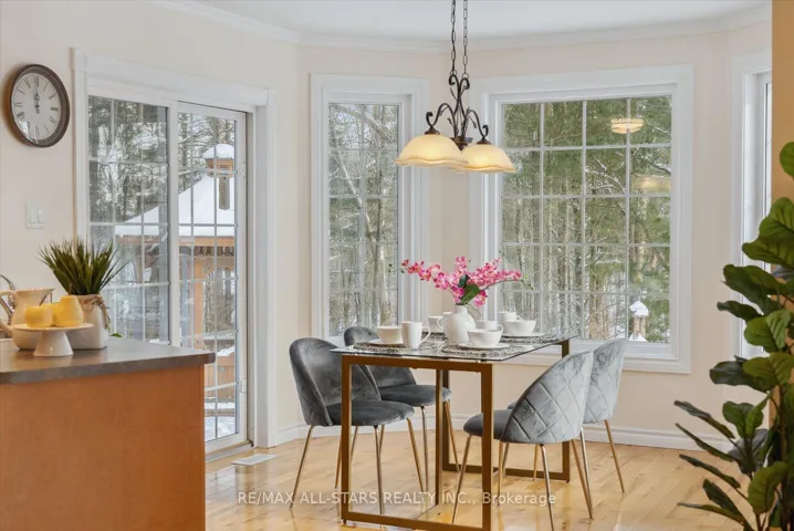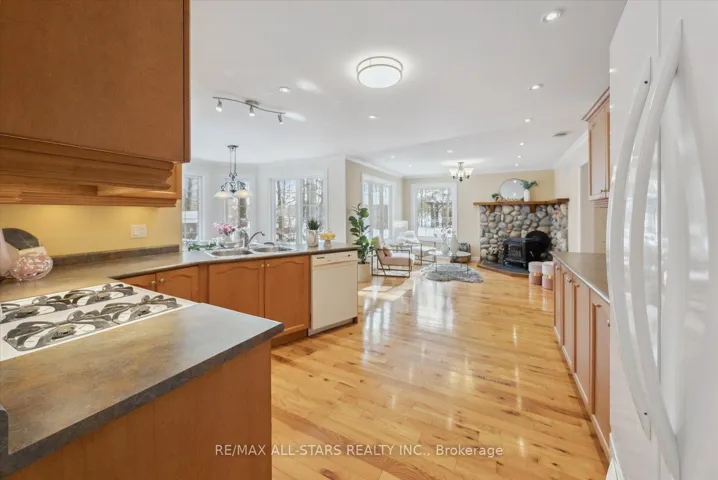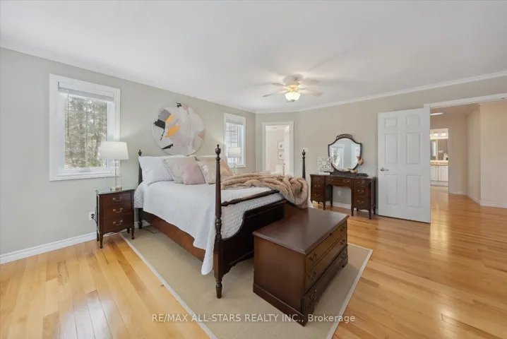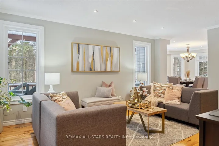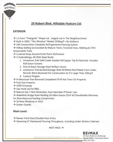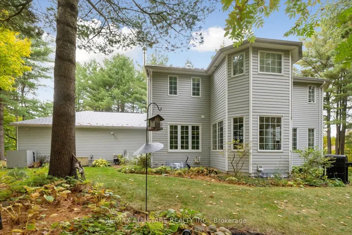 Nestled in the sought-after village of Hillsdale, this exceptional 1.5+ acre estate, one of the largest in the community offers a rare opportunity to own a private, meticulously maintained 2500sq/ft “Winslow” model home by Hedburn. Set among mature trees and backing onto lush greenery, the property is accessed by a 240-ft driveway and features a triple car garage with oversized 9-ft doors. Beautifully landscaped grounds include a wrap-around covered porch with screened-in area, custom shed, and hexagon cedar gazebo, both with steel roofs, ideal for outdoor living. A grand double-door entry opens to a bright, thoughtfully designed main floor.The open-concept kitchen and breakfast area flows into a warm great room with a WETT certified wood-burning stove. Formal living and dining room add elegance, while a main floor bedroom/office, laundry room with garage access, and powder room offer everyday convenience. Upstairs, the spacious primary suite features a walk-in closet and large ensuite bath, complemented by three additional well-sized bedrooms and a full bath. Timeless finishes include gleaming hardwood flooring, crown moulding, pot lights, and 37 updated windows. The partially finished basement offers a large rec room, workshop, and ample storage. Additional features include a steel roof (50 year warranty), 8-zone irrigation, timber accents, high-speed fibre optic internet, city water, natural gas, high-efficiency furnace, owned hot water heater, and low property taxes. Direct access to walking trails and OFSC routes. Conveniently located near Barrie, Orillia, Midland, Georgian Bay, and within walking distance to the local school. A rare offering where privacy, space, and quality meet. An exceptional lifestyle awaits!