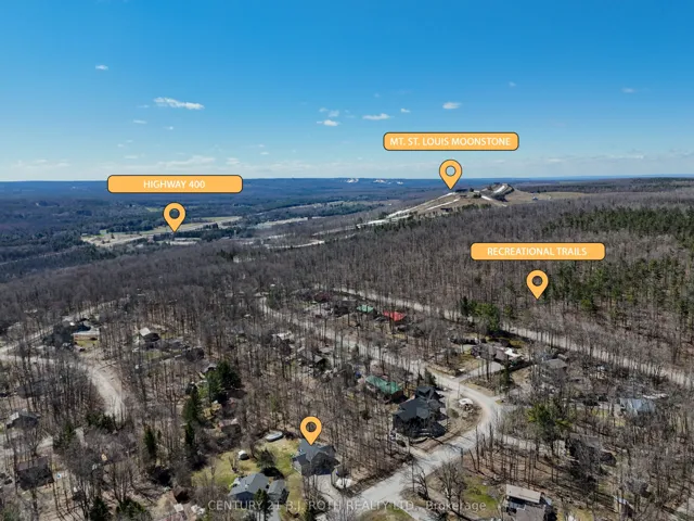 Discover this unique open concept Viceroy home, perfectly nestled on a private, wooded lot just steps from skiing at Mt. St. Louis/Moonstone and year round hiking trails. Set on just under half an acre, this property offers a rare opportunity to enjoy peaceful, nature filled surroundings while remaining only 18 minutes from Barrie with easy access to Highway 400 and key amenities. Designed to impress, the home features soaring cathedral ceilings and stunning floor-to-ceiling windows that flood the space with natural light. The beautifully renovated kitchen (2022) showcases stainless steel appliances and flows seamlessly into the main living area, complete with hardwood floors and a striking fireplace perfect for both everyday living and entertaining. The spacious primary bedroom offers a spa-like ensuite and a walk-out to a private balcony, creating a true retreat. A standout feature of the home is the expansive loft space, ideal as a home office, additional bedroom, or versatile recreation area. The fully finished lower level (2022) adds incredible flexibility, offering additional bedrooms, a rec room, home office or gym, perfect for growing families or multi-use living. Step outside to a fully fenced yard with ample space to relax and entertain, featuring an above-ground pool perfect for summer enjoyment, and parking for up to 8 vehicles. Additional updates include furnace and roof (2022) and pool liner and pump (2023), making this home truly move-in ready. Combining modern updates, functional living space, and an unbeatable location, this is a rare opportunity to own a one of a kind home in a highly sought after area. Welcome home.