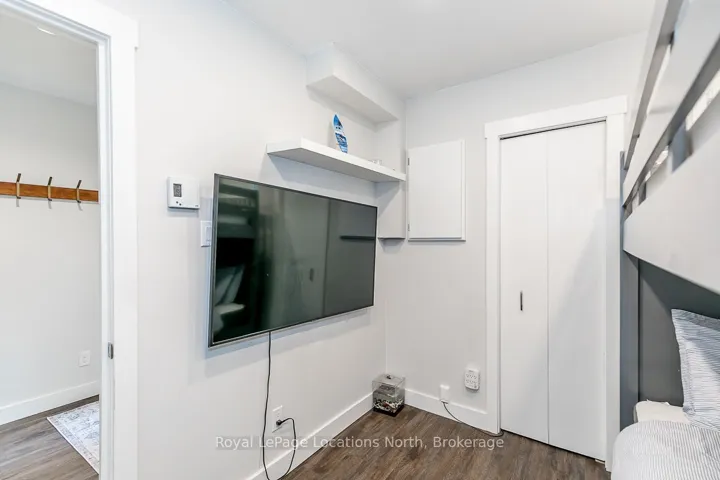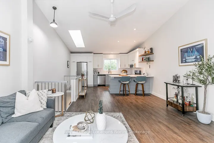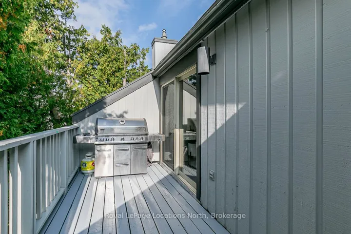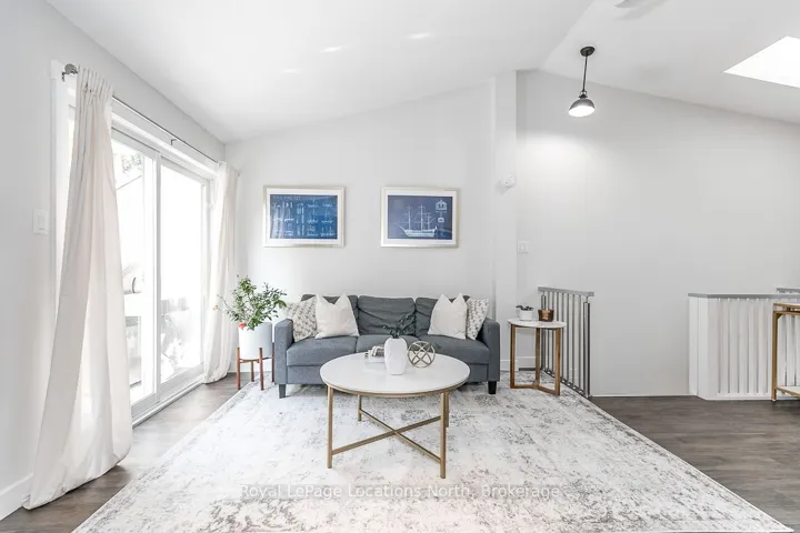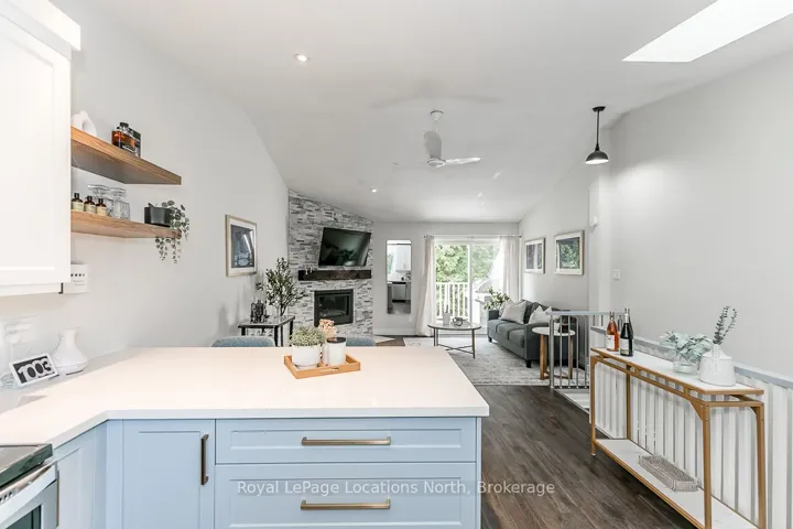 Beautifully updated townhome in a prime Collingwood location, tucked among the trees for added privacy and a true four-season feel. This two-storey home offers the perfect blend of modern updates and low-maintenance living, just minutes to everything the area is known for.The upper level is bright and inviting, featuring vaulted ceilings with a skylight, a cozy gas fireplace with new surround and mantle, updated flooring, and a renovated kitchen designed for both everyday living and entertaining. Sliding glass doors lead to a spacious private balcony that has been recently updated, the perfect spot for morning coffee or unwinding at the end of the day. On the main level, you’ll find two generous bedrooms, two full bathrooms, and convenient in-suite laundry. The primary suite offers ample closet space, a built-in desk, a 4-piece ensuite, and a sliding glass door walkout access to a covered deck, creating your own quiet retreat. Ideally located close to Collingwood’s shops, restaurants, trails, ski hills, and Georgian Bay, this move-in ready home is a great option for full-time living or a weekend escape. Added bonus: Seller to install a brand new heat pump prior to closing (approx. $7,000 value), offering efficient cooling and supplemental heating to help manage year-round comfort and utility costs.