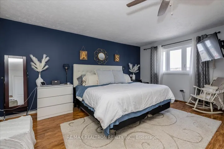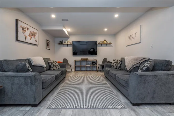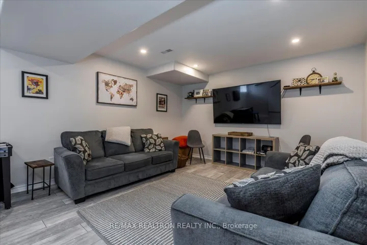 Step into this charming, move-in-ready townhouse featuring a fully finished basement and breathtaking views of Penetang Bay. The entryway welcomes you with elegant ceramic flooring, leading into a cozy living room adorned with hardwood floors. The main level includes a convenient three-piece bathroom and a spacious eat-in kitchen with ceramic tile, an adjoining dining area with hardwood floors, and a walkout to the backyard. Enjoy outdoor dining on the deck, complete with a natural gas BBQ hookup and a generous lawn with rear access perfect for your lawnmower or gardening needs. A beautifully crafted hardwood staircase leads to both the upper level and the basement. The basement offers new laminate flooring throughout, a built-in electric fireplace, a large recreation room with additional storage under the stairs, a cold storage area, laundry, and a modern two-piece bathroom. Upstairs, the hardwood staircase opens onto a hardwood landing, with laminate floors throughout the second level. The expansive primary bedroom features a walk-in closet and a Juliet balcony offering spectacular views of Georgian Bay. Two additional full-size bedrooms and a stylish four-piece bathroom complete the upper floor.