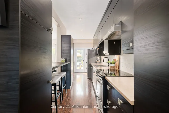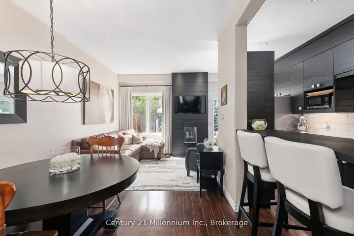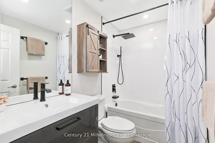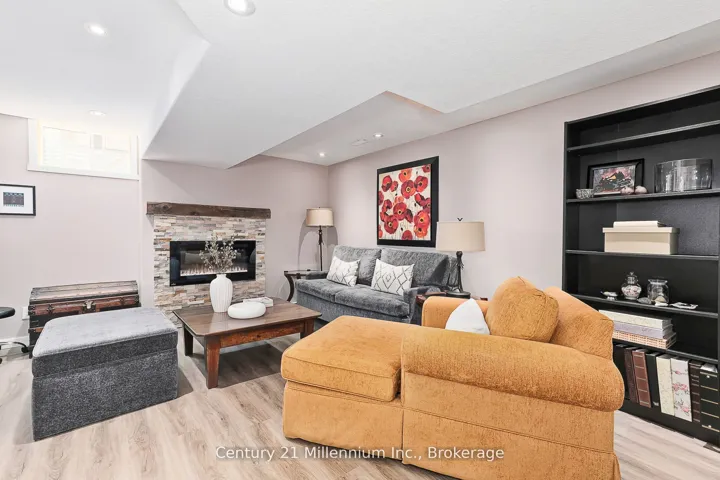 NO CONDO FEES / DOUBLE CAR GARAGE / BACKING ONTO GOLF COURSE / MINUTES TO BLUE & COLLINGWOOD / 2,075 SQ FT OF LIVING SPACE/ HOT TUB. Discover an exceptional opportunity in Collingwood’s highly sought-after Mair Mills community: a beautifully renovated freehold townhome with no condo fees! This property’s prime location boasts a sunny southern exposure & backs directly onto the serene 6th hole of the Blue Mountain Golf Course, with a fully fenced backyard. Step inside to a thoughtfully updated interior featuring an open-concept kitchen with SS appliances, under cabinet lighting, & a living room with a cozy fireplace. Patio doors lead to a professionally landscaped yard with an invisible dog fence, creating a seamless indoor-outdoor flow perfect for entertaining. Recent upgrades include a new hot water heater, A/C unit (2022), and new front/back doors. Upstairs, the large primary bedroom provides a private retreat with a walk-in closet and en-suite with comfort height toilets. The level also features a unique guest suite with a den, created by combining two original bedrooms. This space is ideal for a home office or creative studio & is steps away from the recently renovated main bath (2024) with comfort height toilets. The fully finished basement offers a cozy rec room with an electric fireplace, ample storage, a rough-in for a bathroom, and a laundry room equipped with a convenient dog wash station. Outside, your private oasis awaits. Enjoy the sheltered 20′ x 14′ patio, accessible from the dining area or garage. The backyard features beautiful landscaping, a spacious deck, a hot tub, and two storage sheds. The oversized, attached double-car garage is a standout feature, boasting 10-foot ceilings and a fully insulated, heated interior. Parking for 6. Mair Mills is a vibrant, family-friendly community offering a children’s park and tennis courts, all just minutes from Blue Mountain Village and Downtown Collingwood. IDEAL VACATION PROPERTY OR PRIMARY RESIDENCE!