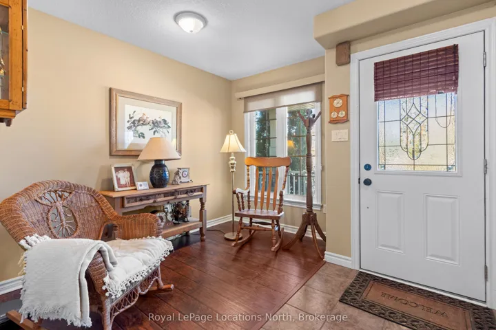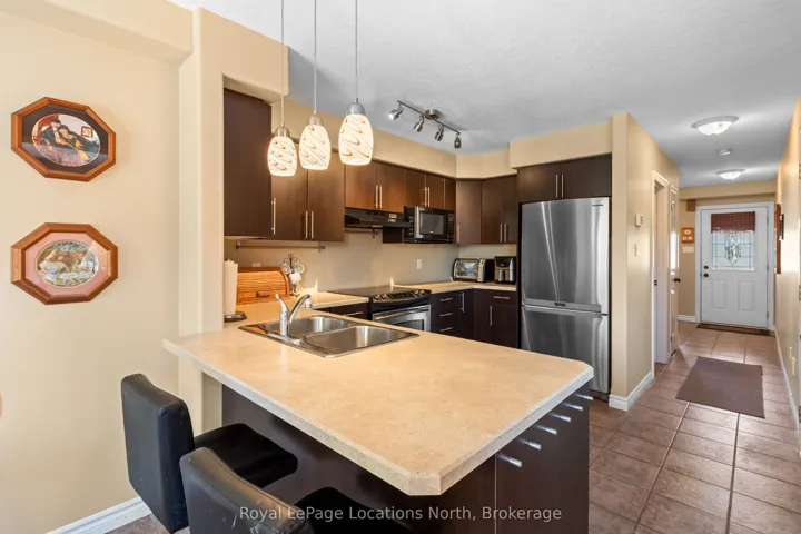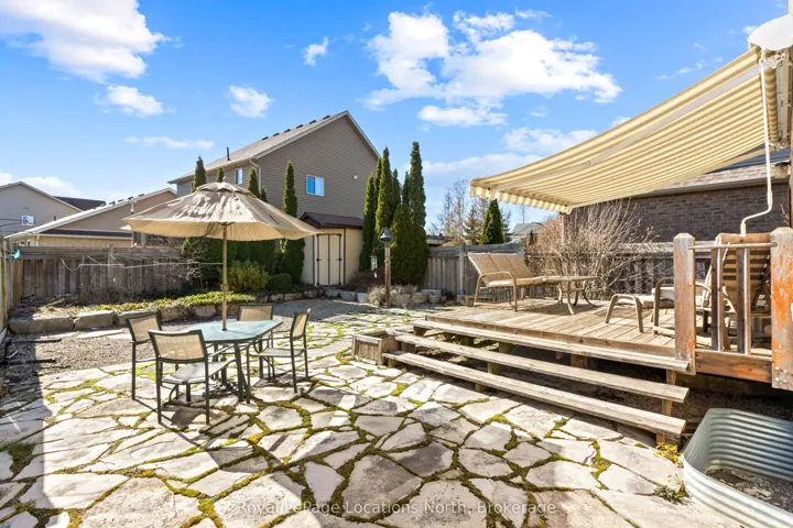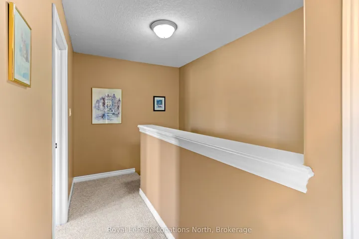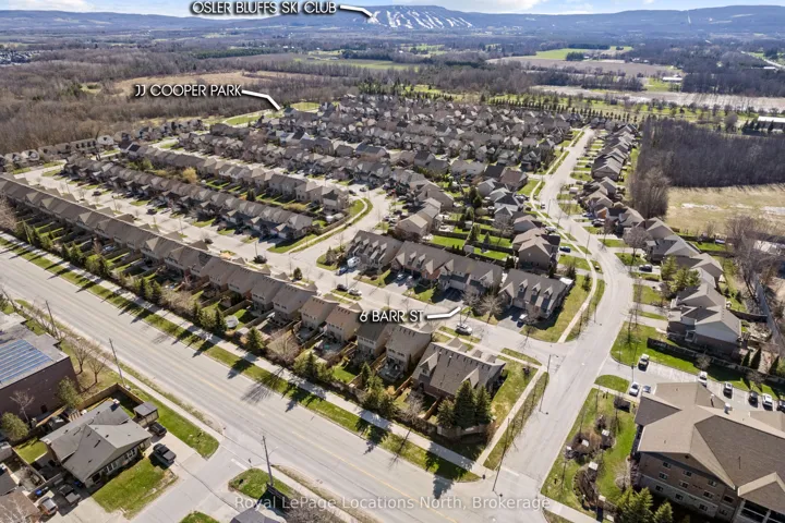 Welcome to this lovely 3-bedroom, 2.5-bathroom townhome in the family-friendly community of Creekside – an ideal place to call home. Perfectly located just minutes from local amenities, walking trails and a community park, this home offers both convenience and lifestyle. Enjoy your morning coffee on the charming front porch before stepping inside to a bright, open-concept living, dining and kitchen area, complete with a cozy gas fireplace and walk-out to a beautifully landscaped backyard. The outdoor space is a true retreat, featuring a spacious deck with retractable awning, flagstone patio, tranquil ornamental pond, garden shed and fully fenced yard. Upstairs, the generous primary suite offers mountain views, a large walk-in closet and a 5-piece ensuite. Two additional bedrooms and a 4-piece bathroom provide plenty of space for family or guests. Additional highlights include an unfinished basement ready for your personal touch, a new furnace (6 months ago), roof replaced 4-5 years ago and an oversized garage with convenient man-door access to the backyard. Short drive to ski hills, golf courses, Georgian Bay and downtown Collingwood. A fantastic home in a welcoming neighbourhood – perfect for families, retirees or anyone looking to enjoy a vibrant, connected lifestyle.