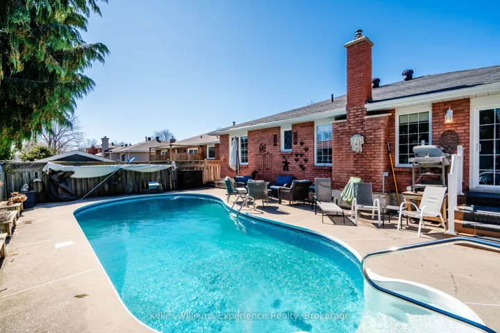 Located in the highly desirable West End, this all-brick bungalow offers the perfect blend of comfort, space, and outdoor living. Featuring 3+1 bedrooms and 3 bathrooms, the home boasts a large main floor primary suite complete with a private ensuite, along with spacious principal rooms including a bright kitchen, living room, and a cozy family room with a gas fireplace. Engineered hardwood flooring runs throughout the main level, adding warmth and style. The fully finished basement extends your living space with a generous rec room (complete with pool table), plus an additional office or craft room. Step outside to your private backyard oasis featuring a 16×32 inground pool with a new liner (2024), a 6-person hot tub with new cover, screened gazebo, cedar planters, and an irrigation system-all fully fenced for privacy. Additional highlights include new gutter guards, central vac, and a Generlink for added peace of mind.