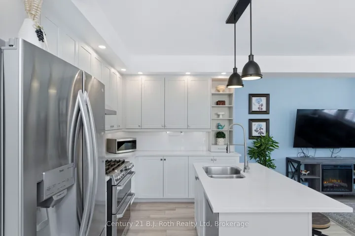 Don’t miss out on this ‘move in’ ready, smoke free, 5 year old home. Nothing to do. Just move in and enjoy. This home shows pride of ownership. It is a beautiful SEMI-DETACHED style, (not townhouse style), with a main floor primary bedroom with 3 piece ensuite. Also located on the main floor is a 2 piece powder room. The second floor has another bedroom and 4 piece bathroom with an additional spacious room that can be used for an office or studio/ craft room. Built on a PREMIUM LOT away from the Highway that offers views of the forest and has close access to roads on both sides. This design offers a covered front porch to sit, many windows for light, offers 2 owned parking spaces (one is a garage with remote control garage door opener and separate electrical panel. Great if you have an EV car.) As this home is within the Seasons Community, it is a condo which gives you the benefits of easy living, as all the outdoor maintenance, such as snow removal and grass cutting and more outside services are managed by the condominium corporation. (ask for a full list of all that is included with condominium fees). Inside the home you will find impressive updated design features such as 9 foot ceilings, professionally painted walls, stunning kitchen with soft close cabinetry, quartz countertops, pantry, 33 inch LG stainless steel fridge with outside water and ice dispenser. GE Dual Fuel/Double oven 30 inch stove, high end Samsung washer and dryer with bottom drawers. All window coverings including remote control blinds in the great room. So many extras in this home including a PREMIUM LOCATION within the community, and a finished lower level with a bathroom. The location is ideal as it is within easy walking distance to Walmart, Tim Hortons, Little Lake. Nearby Georgian Bay, LCBO, bike trails, town dock, arts centre, place of worship, hospital, library, grocery stores etc. Too many features to mention. Book your showing today and be amazed at this beautiful home.