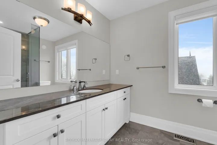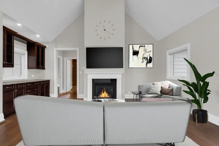 Welcome to 14 Georgian Grande Dr in Oro-Medonte’s prestigious Braestone Estates. This charming bungaloft is nestled on a highly desirable + acre lot backing on the Braestone Farm. Enjoy easy access to the fields of berries, fruit trees, vegetables, and skating pond. This Morgan model boasts a modern open-concept design with 3 bedrms, 3 bathrms, and over 2,400 sq ft of fin living space. Dramatic soaring ceilings in the main living areas are accentuated with walls of windows both front and back. The kitchen features stone countertops, high end Fisher-Paykel appliances, and an additional servery to expand your storage space. The dining area, unique by design, has French doors leading to the front covered porch and also out to the back patio. The living room is made cozy by a Napoleon gas f/p. The primary suite is situated on the back of the home with tranquil views of the farm, has a W/I closet and 4 pc ens with glass shower. The second bedrm on the main floor is being used as an office. Upstairs, a 900 sq ft loft area is set out with a cozy sitting room, a bedroom that can accommodate 2 queen size beds and has an ensuite bath and W/I closet. Great for guests or family. The unfinished basement with rough-in bath has endless possibilities for extended living space. EXTRAS: $5,000 flooring allowance for upper loft. Bell Fibe high speed, Double car garage, 11 KW generator, monitored alarm system, gas BBQ hookup, and lawn sprinkler system. Located between Barrie and Orillia, enjoy peaceful country estate living with a wide variety of outdoor activities at your doorstep; Golf at the Braestone Club, Ski at Horseshoe and Mount St Louis, Bike at Hardwood Hills, Hike in the Simcoe and Copeland forests, Easy access to snowmobile trails, Boat in the surrounding lakes, Get pampered at the Vetta Spa. Feel comfortable being just 10-15 min drive from a wide variety of amenities including restaurants, rec centres, theatres, hospitals, shopping, and Costco.