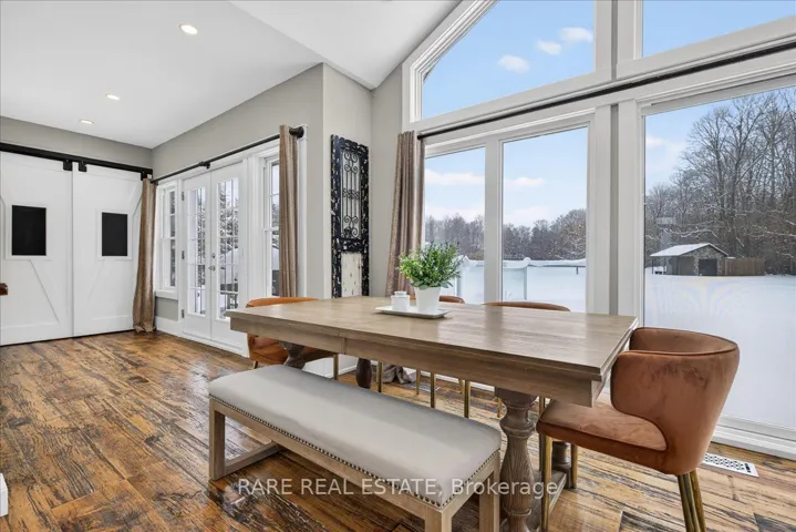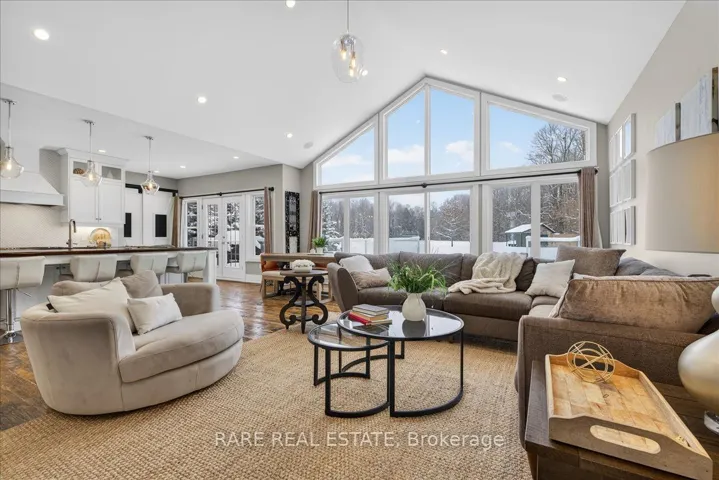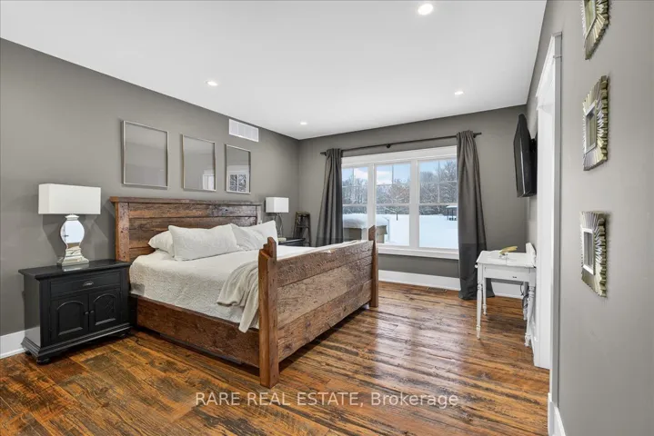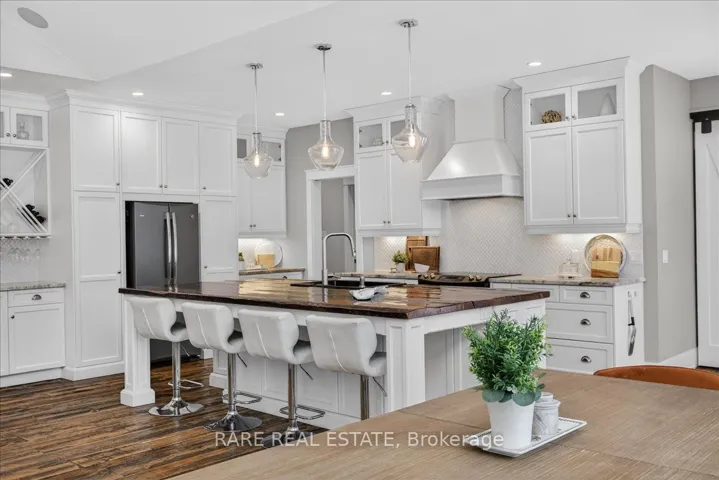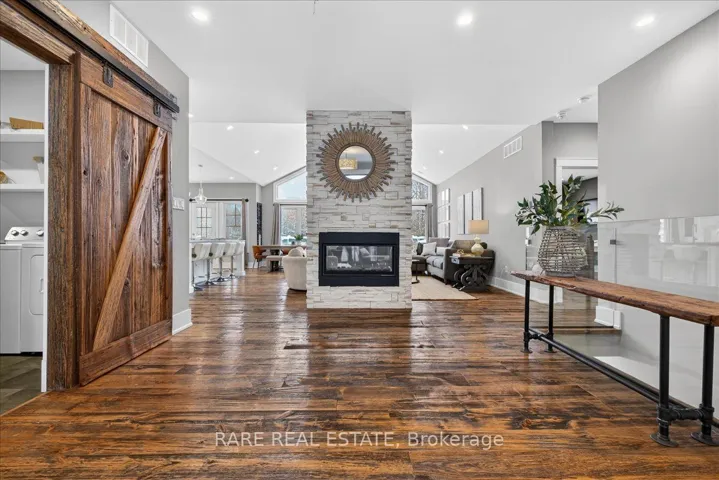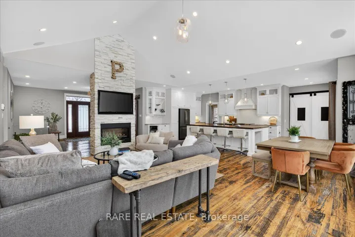 An Extraordinary Country Estate in New Lowell Set on a pristine 2-acre lot, this exceptional custom-built bungaloft offers 4,890 sq. ft. of refined living space. Designed to accommodate both everyday comfort & elevated entertaining, the home welcomes you with dramatic cathedral ceilings, reclaimed hardwood flooring & expansive floor-to-ceiling windows that fill the interior with natural light. A sophisticated double-sided fireplace creates a seamless connection between the main living areas & serves as a striking architectural centerpiece. The chef-inspired kitchen is as functional as it is beautiful, featuring a statement epoxy-finished island with seating, extensive cabinetry, & a thoughtfully designed walk-in pantry. The open-concept design ensures effortless flow into the dining living spaces, making it ideal for hosting and family gatherings alike.The primary retreat is a true sanctuary, offering a generous walk-in closet a spa-calibre six-piece ensuite complete with a freestanding soaker tub & a glass-enclosed walk-in shower with dual shower heads. The main level is further enhanced by three spacious additional bedrooms, a Jack-and-Jill bathroom, an extra full guest bath, & a well-appointed laundry & mudroom with direct access to the insulated, oversized double garage. Above, a versatile loft overlooks the main living space & offers endless potential as a media lounge, home office, or play area. The fully finished lower level expands the living space by more than 2,147sq. ft. & includes a walk-up to the garage. This level features a custom walk-in wine cellar, a dedicated fitness area with built-ins, a sleek three-piece bathroom, a large recreation room, & a flexible room currently used as an office, easily adaptable to a sixth bedroom. Outdoors, the property impresses with a paved driveway, ample parking, & a level, professionally maintained lawn supported by a 70-head in-ground sprinkler system-creating a serene backdrop for your Forever Home!