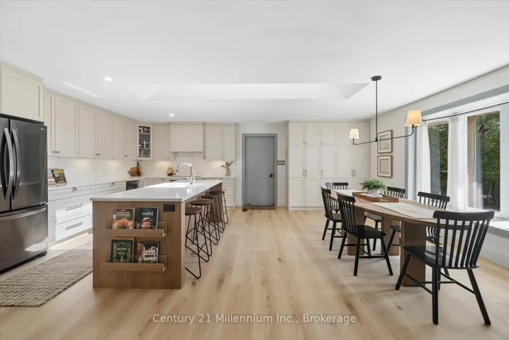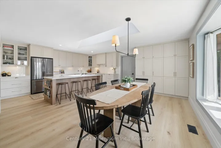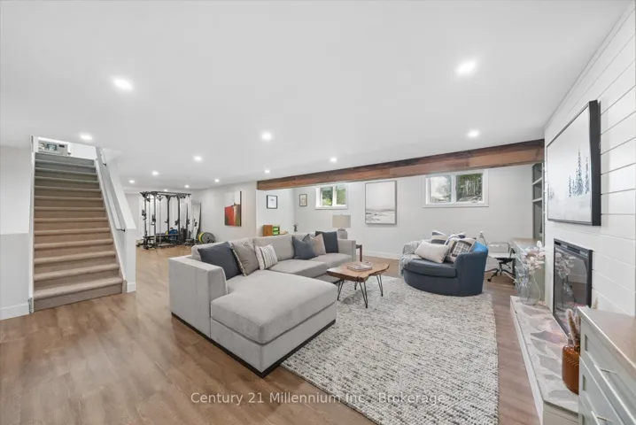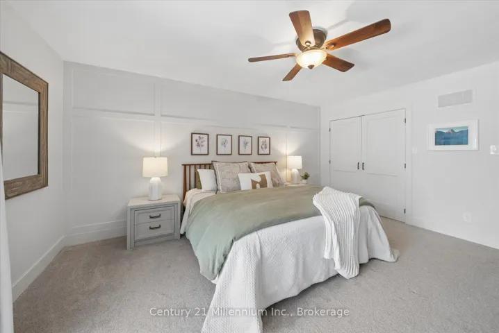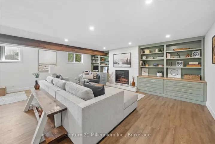 Tucked away on a quiet cul-de-sac in sought-after Nottawa, this beautifully updated bungalow offers stylish main floor living with exceptional space for family and guests on a generous nearly half-acre lot. Recent renovations shine throughout, highlighted by a stunning new kitchen featuring brand new appliances, a large centre island, abundant cabinetry, added pantry storage and gorgeous new flooring across the main level. Thoughtful design details include beautiful accent walls and bright, welcoming living spaces. Updated bathrooms add to the home’s move-in-ready appeal, including a private ensuite with in-floor heating for everyday comfort. The main floor offers comfortable bedrooms and easy one-level living, while the fully finished lower level adds incredible versatility with a spacious recreation area, custom built-ins, a shiplap fireplace, two additional bedrooms and a full bath. The oversized attached double garage offers interior access to both levels, impressive ceiling height, abundant storage potential and space for a workshop or hobby area. Surrounded by mature trees, just steps to the neighbourhood park, and only minutes to the local elementary school, this is a wonderful opportunity to enjoy peaceful village living with quick access to Collingwood’s vibrant dining and shopping scene, Blue Mountain skiing and hiking, Georgian Bay beaches, golf, trails and four-season recreation.