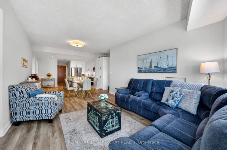 Welcome To This Inviting Waterfront-Inspired Residence Overlooking Barrie’s Kempenfelt Bay. This Beautifully Renovated Bimini Model In The Highly Sought-After Nautica Community Offers A Warm Blend Of Comfort, Quality, & Scenic Living. Ideally Positioned Across From The Waterfront, This 8th-Floor Suite Showcases Beautiful Views Of Kempenfelt Bay, The Marina, & Barrie’s Downtown Skyline.This Bright & Welcoming 2-Bedroom, 2-Bathroom Split-Layout Suite Features A Thoughtfully Designed Interior With Quality Upgrades Throughout. The Kitchen Has Been Tastefully Updated With Quartz Countertops, Custom Soft-Close Cabinetry, A Functional Island, Pantry Storage, & Upgraded Stainless Steel Appliances-Perfect For Everyday Living & Entertaining.The Open-Concept Living Area Is Filled With Natural Light From Large Windows & Offers A Walk-Out To The Balcony, Creating A Seamless Indoor-Outdoor Flow. Complete With Custom Motorized Blinds (2026), This Space Is Ideal For Relaxing Or Hosting While Taking In The Calm Waterfront Views. The Spacious Primary Bedroom Includes Double Closets & A Private Ensuite With A Jetted Tub & Separate Shower. The Second Bedroom Features A Built-In Murphy Bed & Bookcase, Offering A Flexible & Comfortable Space For Guests Or A Home Office, Along With Its Own Walk-Out To The Balcony. Additional Features Include In-Suite Laundry & One Conveniently Located Underground Parking Space Near An Interior Entry Point. Residents Of Nautica Enjoy A Secure, Well-Managed Building With Concierge Service & A Full Range Of Amenities, Including An Indoor Pool, Hot Tub, Sauna, Games Room, Library, & Party Rooms. Ideally Located Just Steps From Barrie’s Waterfront, Trails, Marina, & Downtown Amenities, & Within Close Proximity To The GO Station, This Home Offers A Wonderful Opportunity To Enjoy Easy, Low-Maintenance Living In A Beautiful Setting. Come Experience The Comfort & Charm Of Waterfront Living On Kempenfelt Bay!