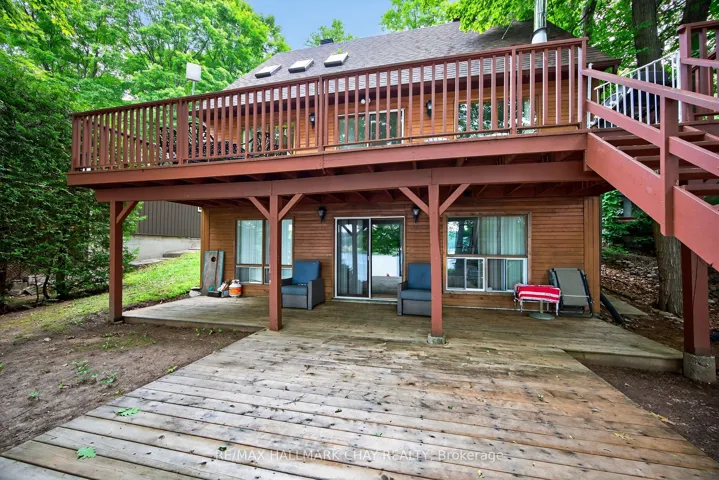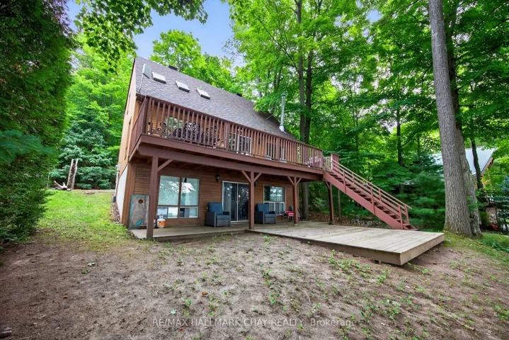 Nestled along 50 feet of pristine shoreline with coveted western exposure, this enchanting 3-bedroom, 3-bathroom chalet-style cottage offers the perfect blend of charm, comfort, and functionality. Set on the tranquil waters of Farlain Lake, the property showcases breathtaking sunsets and serene lake views year-round. The main level features a bright, open-concept living and dining area with soaring cathedral ceilings and skylights that flood the space with natural light. A spacious kitchen, cozy bedroom, convenient laundry room, and a well-appointed 3-piece bathroom complete this level. Upstairs, two generously sized bedrooms provide ample space for family or guests and share a stylish 4-piece bathroom. The recently renovated lower level adds exceptional versatility, featuring a new 3-piece bath, a flexible space easily converted into a fourth bedroom, and a walkout leading to a newer deck-perfect for seamless indoor-outdoor living. Enjoy year-round comfort with a charming wood stove for cozy winter evenings, and in the warmer months, relax by the water from your private dock. Whether you’re entertaining or unwinding in peaceful lakeside surroundings, this property offers an inviting retreat for every season.