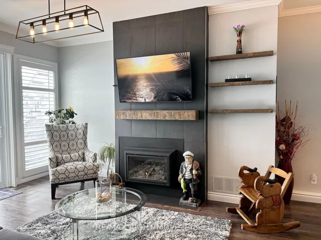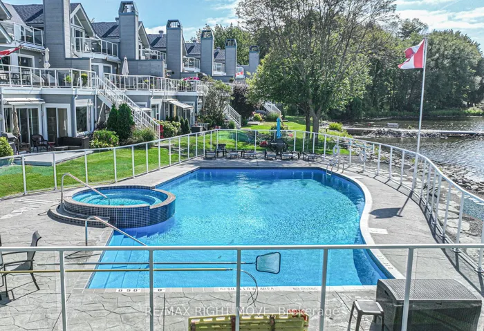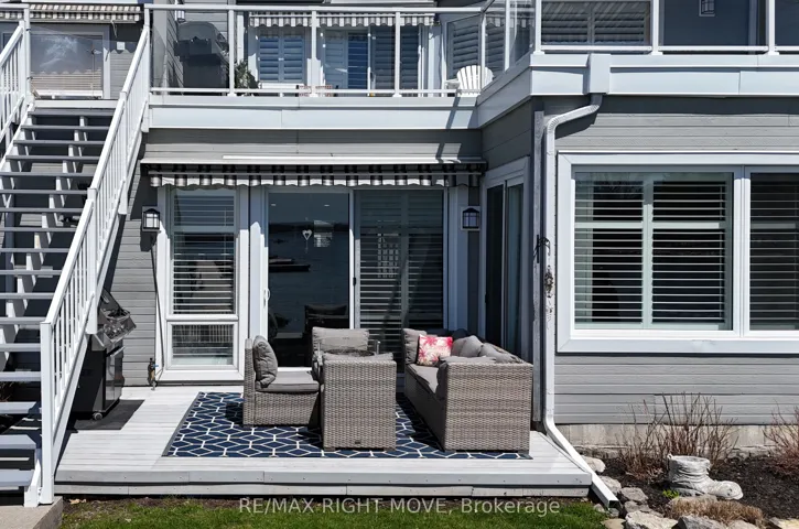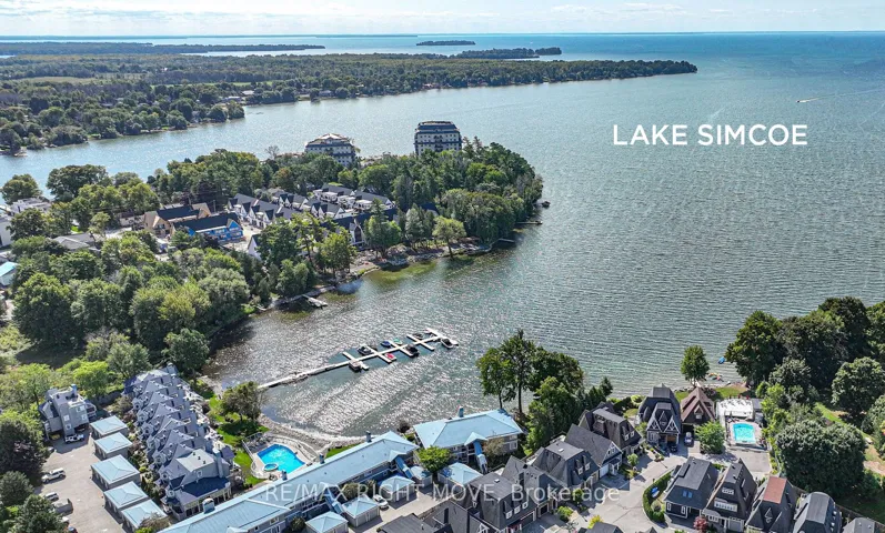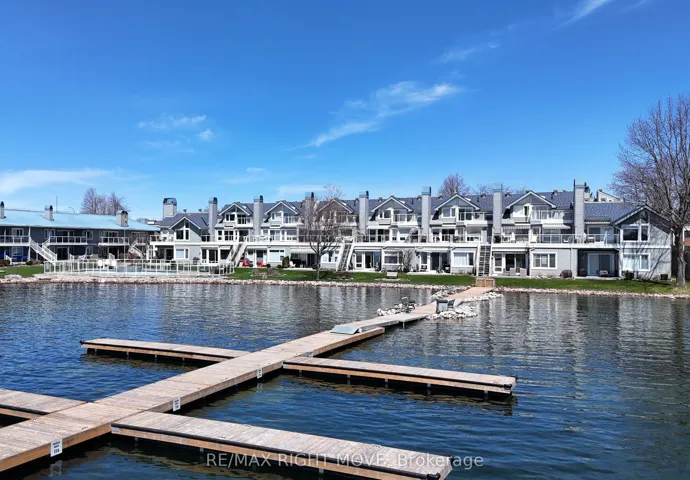 Spectacular south-facing Lake Simcoe views on the Trent Severn Waterway, private dock & effortless waterfront living in the sought-after Invermara Bay community. Unobstructed lake views from principal rooms and the added benefit of this unit enjoying its own private dock. This may be The Right Move for those looking to embrace a year-round waterfront lifestyle or exceptional vacation retreat. This unit shows 10+. Upgraded kitchen w/ stainless appliances: fridge w/ water & ice dispenser, built-in over-range microwave, dishwasher, & breakfast bar w/lake views & w/additional storage. Walk-in pantry adds exceptional functionality w/space for a freezer, coffee bar, & additional storage. Great room combines the dining & living areas & is highlighted by impressive 9.5-ft ceilings enhancing the sense of space. Striking focal point is a floor-to-ceiling tiled gas fireplace w/ beam mantle. Expansive 8-ft high by 12-ft-wide patio door system w/side windows leading to the patio maximizes panoramic lake views . Primary suite, perfectly positioned on the waterside w/ a large picture window captures breathtaking views from the patio door to the private patio. Ensuite includes a stand-alone tub with lake views & separate water closet for added privacy. Second bedroom w/ double french doors provides flex space for guests, a den/office. Other features: Crown moulding, California shutters, carpet-free flooring, F/Air natural gas heating, owned gas water heater, wifi & cable incl. in maintenance. Full crawl space offers valuable additional storage. Uncommon benefits, this unit includes both a garage, an outdoor parking space as well as a private dock. Not all units have a dock or two parking spaces. The main dock includes a ladder for swimming. Residents enjoy shared amenities including a pool & fitness room, sauna, washroom & meeting room. Ideally positioned close to the pool yet not directly in front, this unit offers convenient access to the docks while maintaining privacy.