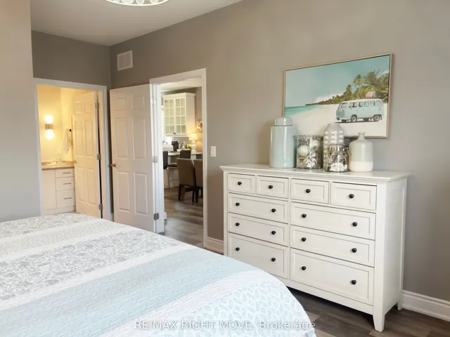 Not all homes are created equally. Tucked away at the very end of a QUIET CUL-DE-SAC (low traffic), this exceptional END-UNIT WALK-OUT BASEMENT BUNGALOW townhome offers one of the most desirable settings in North Lake Village. Backing onto mature trees, it’s the perfect blend of privacy, comfort, and LOW MAINTENANCE LIVING. Designed with downsizers in mind but certainly a great fit for families or multigenerational living. A bright open-concept main floor features 9-foot ceilings, wide plank flooring, and an abundance of natural light enhanced by additional side windows. The upgraded kitchen offers beautiful cabinetry with crown detail, a walk-in pantry, and seamless flow into the living and dining areas, with direct access to an extended upper deck overlooking the treed backdrop through the patio doors with transom & build in blinds. Main floor spacious primary bedroom with walk in closet and en-suite. The second bedroom & full bath are at the opposite ends of the home adding a functional separation in the floor plan. Convenient MAIN FLOOR LAUNDRY/mud room with inside entry to the garage for ALL ON ONE LEVEL LIVING. FULLY FINISHED WALK-OUT basement adds incredible versatility, with a large recreation space, third bedroom, plus a private den or office space, a full bathroom, and an updated kitchenette area-ideal for guests, extended family, or entertaining. Additional recent improvements include a new electric fireplace, custom doors & updated finishes. Outdoor living is equally impressive from both the main & basement levels as the extended upper deck provides a covered lower patio with soffit ceiling and drainage system, privacy shutters, and a fully fenced yard. A detailed list of upgrades to this home is available. Visitor parking & mail is conveniently located just steps across the street. This is a great home in one of Orillia’s most sought-after communities.