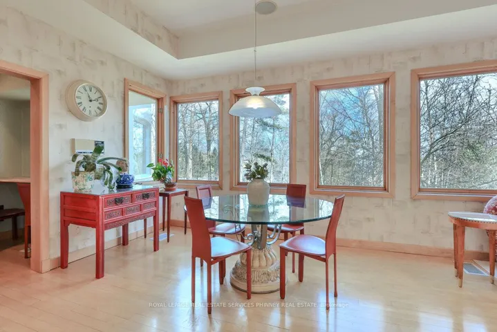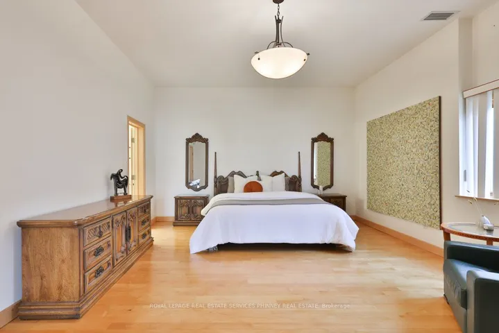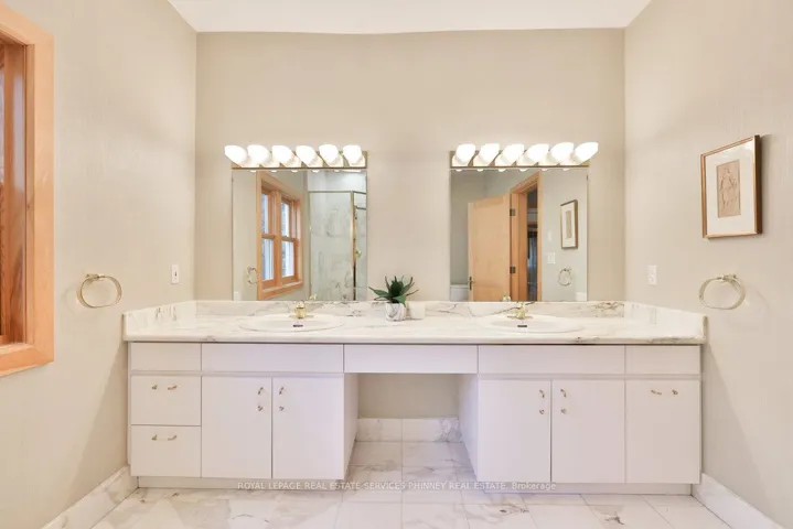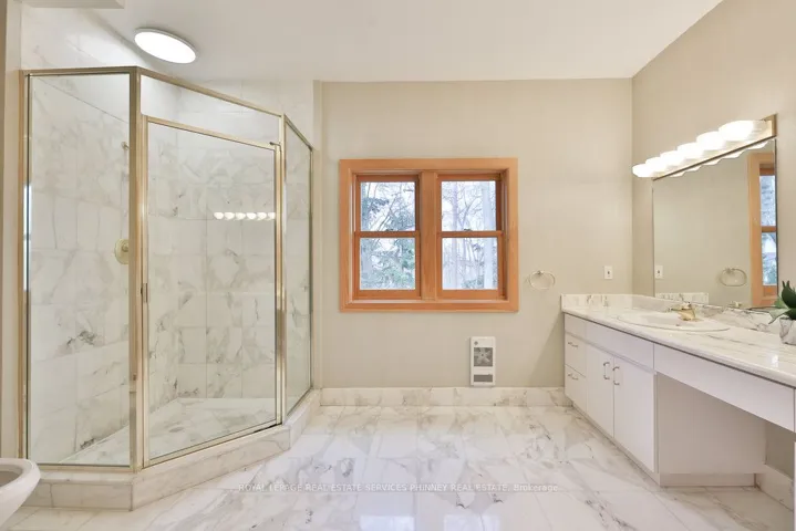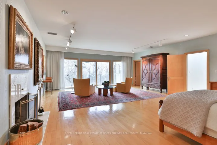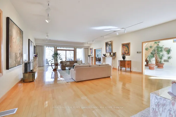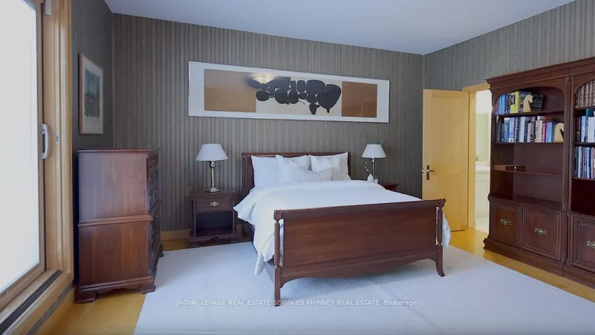 Bauhaus Masterpiece in Lorne Park Estates. This architectural gem, designed by Joseph A. Medwecki, sits on a private ravine lot with stunning lake views and nearly 12,000sqft of living space. Offering unparalleled privacy and natural light, this 7-bedroom home spans three levels, ideal for multi-generational living or staff accommodation. Features include 10-ft ceilings, maple hardwood floors, pot lights, and multiple marble-surrounded fireplaces, blending sophistication and comfort throughout. The main floor is designed for entertaining, offering a library, a grand formal living room that flows seamlessly through double doors to the expansive formal dining room- an elegant setting for hosting guests. The chef-inspired kitchen boasts high-end appliances& blue quartz countertops. For added convenience, a main floor bdrm w an ensuite creates an ideal space for a nanny or guests. The upper level reveals a luxurious primary retreat complete w a spa-like 5pc ensuite and a private balcony offering mesmerizing lake views. A 1,529-square-foot rooftop terrace your personal oasis with panoramic views of the lake, an idyllic place to relax and unwind. The lower level is a haven of relaxation and entertainment, ft five walk-outs to the rear gardens, flooding the space with natural light. It includes a private spa room with a hot tub and sauna, a secondary primary suite with a 4-piece ensuite, a gym, games room, and a 1,200-bottle wine cellar. A 3-bay garage accommodates 5 cars, with space for 10 more in the driveway and additional parking near the street. This home is not just a residence it’s a statement, a one-of-a-kind masterpiece that beckons those with the most refined tastes. Experience the extraordinary and make it yours today!