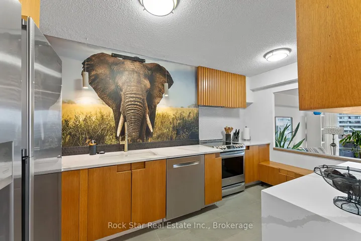 Welcome to Lambton Square Resort-Style Living in the Heart of Toronto! This premium 2-bedroom, 2-bath split-level condo (over 1,000 sq. ft.) has been fully renovated with a chic mid-century vibe and countless upgrades. The designer white oak kitchen is a cooks paradise, while ensuite laundry and underground parking with bike storage and locker add everyday convenience. The spacious primary suite boasts its own temperature control for year-round comfort. Step outside to a beautiful 73 x 182 balcony, perfect for outdoor living and entertaining. Enjoy worry-free ownership with all-inclusive fees covering heat, A/C, hydro, water, Rogers Xfinity TV and Internet. Lambton Square is pet-friendly and offers resort-style amenities including a building-dedicated outdoor pool, gym, sauna, party room, and more.