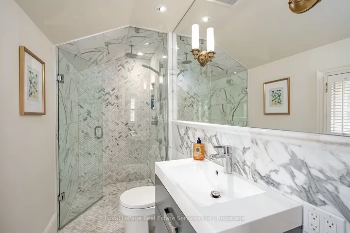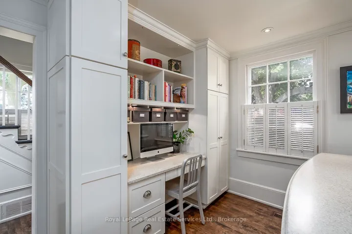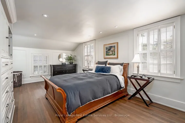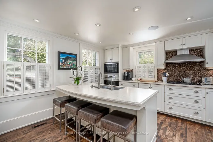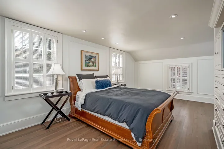 Nestled south of Lakeshore in the heart of Old Oakvilles historic district, this beautifully restored Georgian-style home, designed by Gren Weis, blends timeless character with modern updates. Steps from the lake, river, and vibrant Downtown, it offers an unmatched lifestyle location.The home boasts exceptional curb appeal with a flagstone path leading to a spacious foyer. Sun-filled interiors feature Farrow & Ball paint, new hardwood on the main level, preserved fir upstairs, smooth ceilings, and recessed LED lighting.The updated kitchen includes a large island, built-in appliances, and desk area. The dining room offers panelled walls, RH sconces, French doors to the garden, and plantation shutters. A charming living room features built-in bookcases, window seat, wood-burning fireplace, and walkouts to a sunroom overlooking the southwest garden and pool. A mudroom and stylish powder room complete the main floor.Upstairs are four bedrooms with ample closets and antique brass hardware. The primary suite offers custom built-ins and a renovated ensuite with heated Carrara marble floors and zero-threshold shower.The fully finished lower level (8 ceilings, slate flooring) adds living space with a media room, workout room, cedar closet, laundry, and storage. Updated mechanicals include a high-efficiency furnace, central AC, 100 AMP panel, irrigation. Cedar roof, new fencing, cobblestone driveway. Outside enjoy a private oasis with saltwater inground pool, brick patios, and landscaped gardens. Steps to the Lake, Oakville Club, Yacht Squadron, Library, Performing Arts Centre, Downtown, and top schools.