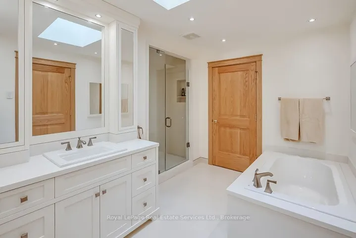 This beautiful turn-key residence offers the rare combination of contemporary finishes and conveniences all within steps of the Waterfront trail and Downtown Oakville. This beautifully maintained bungaloft-style residence with nearly 3000SF above-grade living space features a main floor Primary suite & main floor Laundry with the bonus of 2 additional bedrooms and bathrooms on the second floor. Gracious front entry hall with hardwood floors leads through to the Great Room and Kitchen. The top-of-the-line Downsview kitchen with quartz counters and slab backsplash,48″ Wolf range, full height Sub Zero Fridge & separate set of Freezer Drawers, Miele Dishwasher. Breakfast bar overlooks the Great Room with massive vaulted ceiling encompassing an informal Family Room & Dining Area. The top-of-the-line windows and doors features electronic remote Hunter Douglas louvered blinds. This room can be transformed at night into at state-of-the-art movie room with retractable projection screen. Main floor Den/Office. Primary suite with walk-in closet and renovated ensuite Bathroom, dual sinks and large glass shower. Upstairs find a bright open concept reading nook, two large bedrooms and an additional 1 1/2 Bathrooms, offering excellent space for family and guests. The lower level is finished and is ideally suited for storage, recreation and/or hobby space. Attached garage with epoxy flooring and inside entry. Family Room walk-out to new composite deck overlooking the private, fully landscaped garden with in-ground pool. This impeccably designed and easy to maintain property is sure to impress. Don’t Miss