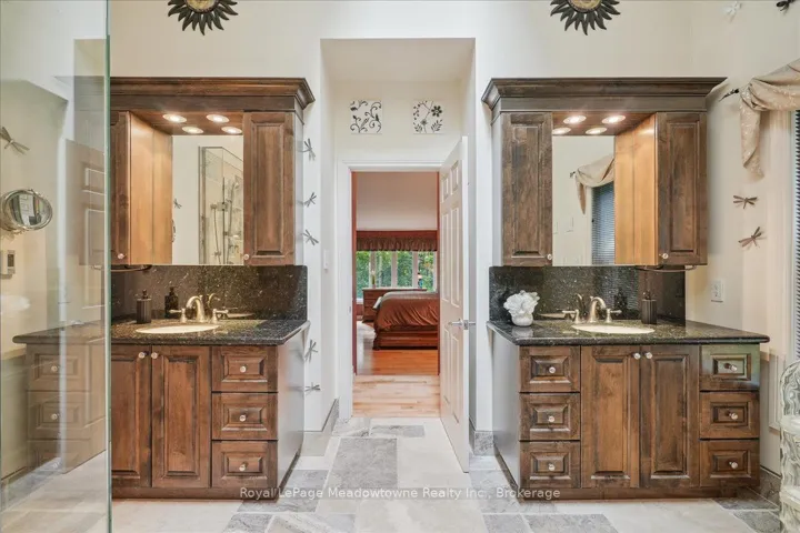 Discover an unparalleled gem rarely available on the market: a private and serene estate with a custom-designed home that fulfills every dream. Set on over 10 lush acres amidst the stunning Niagara Escarpment, this meticulously cared-for property is just minutes from the 401 and downtown Milton. Surrounded by vibrant perennial gardens and towering mature trees, this home is perfectly positioned in the heart of Halton Conservation’s premier parks. You’ll be just moments from Kelso Conservation Area, Rattlesnake Point, Crawford Lake, Hilton Falls, and the Bruce Trail ideal for outdoor enthusiasts and nature lovers. The custom-built bungalow features over 6,000 sq. ft. of exquisite living space. Its open-concept design showcases vaulted ceilings, a double-sided stone fireplace, a spacious kitchen with pine cabinets, granite countertops, and an island. A convenient wet bar, elegant dining room, and a fantastic outdoor screen room offers the perfect space for 3-season entertaining. Enjoy stunning views from walkout decks off the kitchen, screen room, sun room, and master bedroom balcony. The lower level is a haven of relaxation and recreation. You will find a large recreation room with a cozy wood-burning stove, a games room, four additional bedrooms, and access to a three-car garage. Walk out to a luxurious inground pool with a hot tub, cabana, and a soothing water feature. The home is equipped with a 400-amp electrical service, a propane-powered generator, and a geothermal heating and cooling system. A separate two-car garage provides the ideal “Man Cave” and additional storage for garden equipment. Garden enthusiasts will love the large greenhouse/potting shed, and the property boasts a fire pit with a patio area, night landscape lighting, and over one kilometer of meticulously groomed walking trails. Why settle for a cottage when you can have this dream home without the drive? Experience the ultimate in luxury and tranquility this is truly what dreams are made of!