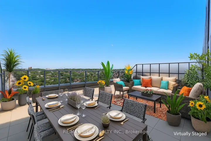 Welcome to this stunning PENTHOUSE SUITE in the heart of the St Clair. A bright and beautiful suite with a huge private terrace! This spacious, Scandinavian-inspired penthouse’s suite has 2 bedrooms plus a den, 2 bathrooms and upgraded features like floor-to-ceiling windows with stunning southern views of downtown, The Junction, High Park & Lake Ontario. You’ll love the south-facing balcony, but the real showstopper is the massive private 589 sqft northeast-to west facing terrace! Enjoy breathtaking unobstructed views in almost every direction! Whether you’re sipping your morning coffee, gardening or winding down with sunset views, this terrace is the ultimate outdoor retreat. Design the space to fit your needs. Just a short stroll to Stockyards Village, grocery stores, schools, trendy cafes and restaurants like Geladona, Wallace Espresso, Tavora Foods, Earlscourt Park, Toronto Public Library & the Junction Farmer’s Market. Located in an intimate boutique building, enjoy thoughtfully designed amenities including a fitness centre, pet spa, party room, games room, co-working space, and even a bike repair room. ROGERS WIFI included in maintenance fees. Commuting is a breeze with easy access to transit, Keele Street, Black Creek, the 401 and 400, and a new GO Fast Track station coming soon. Just steps to the vibrant shops, cafes, and culture of St Clair Ave and the Junction, with downtown Toronto close by. This is elevated city living in one of Toronto’s most beloved neighborhoods.