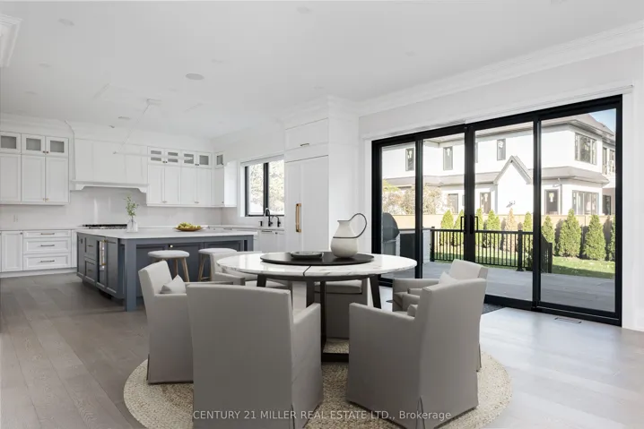 Beautifully built and impeccably finished, this custom residence offers more than 6,700 square feet of living space in one of Oakville’s most sought-after neighbourhoods. Stone construction, a solid wood entry door, heated garage floors, and timeless architectural detailing set the tone for the quality found throughout the home. Inside, the foyer features heated marble tile, plaster crown mouldings, poplar baseboards, and sightlines that lead into bright, open spaces. A dramatic dining room anchors the main level with a soaring skylight, custom wall panelling, integrated speakers, and carefully curated lighting. The chef’s kitchen is designed with extensive custom cabinetry, quartz countertops, a large island, and easy flow to the family room. The servery and mudroom connect seamlessly; each finished with thoughtful storage and heated floors. Upstairs, all four bedrooms are generously scaled and feature private ensuite baths. The primary suite includes a fireplace, custom walk-in closet, and a beautifully coordinated ensuite with heated floors, a freestanding tub, glass shower, and frosted-glass water closet. A full-size laundry room with cabinetry and folding space completes this level. The lower level offers exceptional versatility with radiant in-floor heating, two additional bedrooms, a three-piece bath with sauna, a recreation room with fireplace, a wet bar/kitchen setup, and a dedicated theatre room beneath the back porch. Wide walk-up access brings in natural light and creates an ideal in-law or extended-family space. Outdoors, the large stone terrace features a gas fireplace and outdoor kitchen with built-in BBQ, extending the home’s entertaining potential. Motorized blinds, CAT-6 wiring, solid core doors, and an oak staircase with glass panels highlight the home’s elevated craftsmanship. With top-ranked schools, shopping, GO access, and major highways nearby, this is a quality home in a prime location.