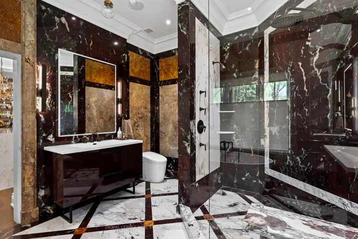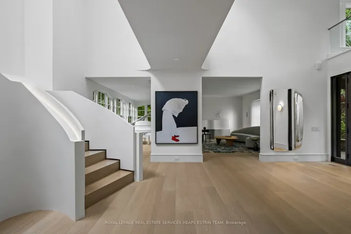 Leave the city in the city. This serene estate invites you to do just that. Nestled behind the gates on one of Toronto’s most exclusive streets, 25 North Drive is a rare architectural offering: a quiet, confident statement where design, art, and nature coexist in harmony. Thoughtfully reimagined through an internationally acclaimed renovation by Reflect Architecture and featured in leading architectural and design publications. Executed with masterful precision, the transformation celebrates both innovation and restraint, elevating everyday living to an art form. At the heart of the home lies a truly exceptional Obumex kitchen, handcrafted in Belgium. This kitchen thoughtfully integrates artful sensibilities, natural inspirations and family-oriented functionality. With minimalist lines and bespoke finishes, this space is more than a kitchen, it is a sculpture in daily use. Expansive windows frame ravine views and infuse the interiors with natural light. The main floor is tailored for elegant living, featuring sun-filled rooms, with an inviting family room, and that stunning kitchen which opens seamlessly to the lush backyard. The upper levels include an expansive primary wing with dual dressing rooms, a spa-inspired ensuite, and treetop views. Four additional bedrooms offer ensuite baths, providing privacy and independence for family or guests. The lower level features a gym, recreation room, kitchenette, and full bath, making it ideal for wellness and entertaining. Manicured gardens, mature trees, a ravine backdrop, a sparkling pool, and a private tennis court elevate the everyday. With architectural pedigree, natural beauty, and a legacy of care, 25 North Drive is more than a home. It is a lifestyle defined by privacy, presence, and permanence. Some homes are built for living, this one was crafted for a life well lived.