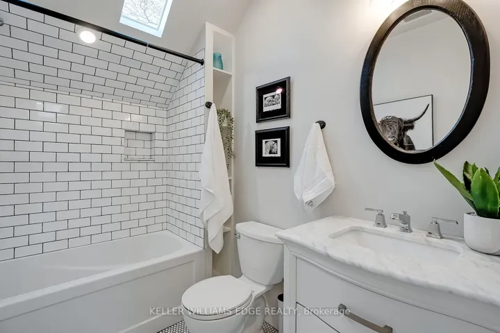 This tastefully renovated century farmhouse sits on one of the most sought after streets in downtown Burlington, offering a truly unique opportunity on a premium park like 60 x 181 ft lot adjacent to the waterfront trail and bike path. This 3 bedroom, 3.5 bathroom home features hardwood floors, exposed brick, skylights and pot lighting that add warmth and character throughout. The main level features a beautiful primary bedroom with a spa inspired 5 piece ensuite and a large walk in closet with stacked washer and dryer. The open concept kitchen includes stainless steel appliances, marble counters, tile backsplash and under cabinet lighting. Enjoy the formal dining room with exposed brick, vaulted ceiling and a rough in wet bar, perfect for entertaining. Along the back is an inviting family room with custom built ins, a charming office or reading nook, and a powder room overlooking the expansive fully fenced backyard. The upper level offers 2 bedrooms and a full bathroom, ideal for kids or guests. The finished lower level provides even more flexibility, featuring a comfortable rec room or home office along with a 3 piece bathroom. There is inside access to the spacious 1.5 car garage with a bonus fully finished kids retreat above, complete with electric fireplace and AC. The driveway provides parking for 4 cars.Steps to schools, parks, Lake Ontario, Spencer Smith Park, the YMCA, performing arts centre, library, shops and restaurants, this home offers an unmatched walk-able lifestyle in downtown Burlington.