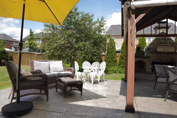 Located in the prestigious Vales of Castlemore North, this exceptional detached home sits on a rare, pie-shaped lot with professionally landscaped grounds and a private backyard oasis featuring a custom stone fireplace and gazebo. The grand interior welcomes you with soaring cathedral ceilings, an open-to-above foyer, and second-floor balconies overlooking both the entrance and living room, creating an airy, elegant feel. Just off the foyer, a bright flex room with French doors and a chandelier offers the perfect space for a home office, study, or personal retreat. The main floor also features hardwood flooring throughout, a cozy gas fireplace in the family room, and a spacious kitchen with ample prep and storage space. Upstairs, you’ll find four large bedrooms, including a primary suite with a walk-in closet and private ensuite, a Jack & Jill 5-piece bathroom shared between the second and third bedrooms, and a fourth bedroom with its own private 4-piece ensuite. The fully finished basement adds exceptional value with a large recreation area, full bathroom, and two additional rooms that can easily be converted into bedrooms with ensuite potential. With garage access to the laundry room, a separate side entrance, and close proximity to top-rated schools, parks, and all major amenities, this home delivers luxury, flexibility, and comfort in one of Brampton’s mostsought-after communities.