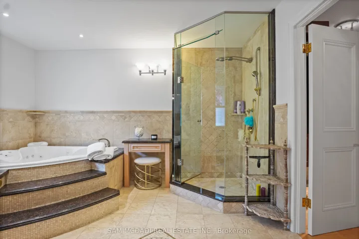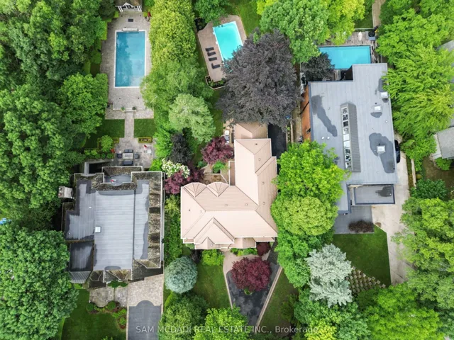 Immerse yourself in the upscale rhythm of Lorne Park, where this remarkable custom-built estate delivers privacy and comfort. Set on a deep 310-ft lot, 1382 Aldo Drive offers nearly 7,500 square feet of finished living space in one of South Mississauga’s most sought-after enclaves. A sun-filled foyer introduces the home’s grand proportions, leading to a dramatic family room with soaring ceilings, custom built-ins, and floor-to-ceiling windows that flood the space with natural light. The formal dining area sits just beyond, offering an elegant setting for hosting. At the heart of the home, the chef-inspired kitchen pairs granite counters with stainless steel appliances, an oversized island, and a breakfast area that invites connection and ease. The main-floor suite provides spa-like comfort and boutique-style storage. Above, five more bedrooms await, each with a private ensuite or semi-ensuite and custom closets. The Owner’s suite is a true retreat with a private balcony, walk-in closet, and a luxurious five-piece bath designed for rest and relaxation. The finished walkout lower level brings incredible versatility. A wine cellar, sauna, home gym, office, and large recreation area with a fireplace create the perfect backdrop for entertaining or quiet evenings in. Step outside to curated landscaping, a spacious patio shaded by mature trees, and a resort-style inground pool that makes every summer day feel like a getaway. Topped with a durable Marley roof, the home pairs timeless design with long-term peace of mind. Located just minutes from Whiteoaks Park, top-rated schools, lakefront trails, and the shops and restaurants of Port Credit and Clarkson Village. Commuters will appreciate quick access to major highways and downtown Toronto. This is a home that delivers presence, privacy, and purpose in every square foot.
