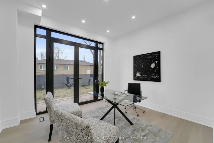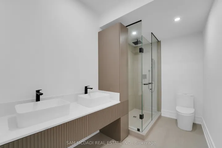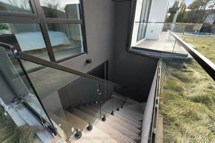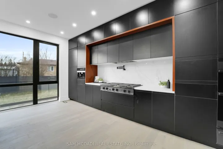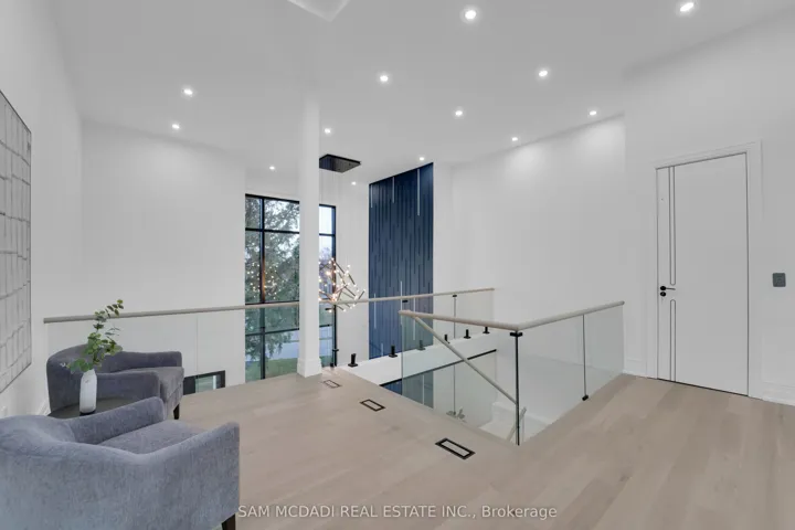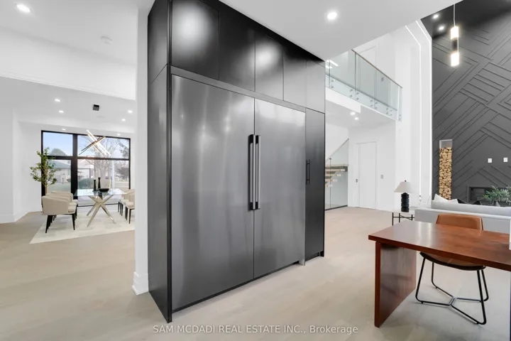 Discover the epitome of upscale living in this contemporary masterpiece nestled in the heart of West Oakville. Offering an exquisitely finished space, this custom home features 5 spacious bedrooms, 6 luxurious bathrooms, and thoughtful details throughout including a dedicated pet spa. Designed for both luxurious everyday living and unforgettable entertaining, the grand foyer flows seamlessly into a breathtaking open-concept living area. Soaring 23-foot floor-to-ceiling windows fill the space with natural light, framed by premium German hardware systems and high-end aluminum gliding windows. Engineered white oak hardwood floors and ambient pot lighting enhance the homes bright, airy atmosphere. The chef-inspired kitchen is a true showpiece, featuring top-of-the-line Dacor appliances, custom cabinetry, a sleek waterfall island, and generous space for casual meals or elegant dinner parties. Striking feature walls add architectural interest and modern artistry throughout the home. Relax by the Napoleon fireplaces in both the living and family rooms, or host guests comfortably in the main-floor bedroom complete with a private ensuite; ideal for visitors or multi-generational living. A Cambridge hydraulic elevator provides seamless, wheelchair-accessible access to all levels. Upstairs, you’ll find three serene bedrooms, each with spa-like ensuite bathrooms and walk-in closets. The beautifully finished lower level features radiant heated floors, an oversized cold room, and a walkout to the backyard, offering even more space to unwind or entertain. Additional highlights include a Control4 automation system, central vacuum, walkout basement, swimming pool, aluminum and glass fencing, and so much more. Every detail of this home reflects exceptional craftsmanship and timeless contemporary elegance.