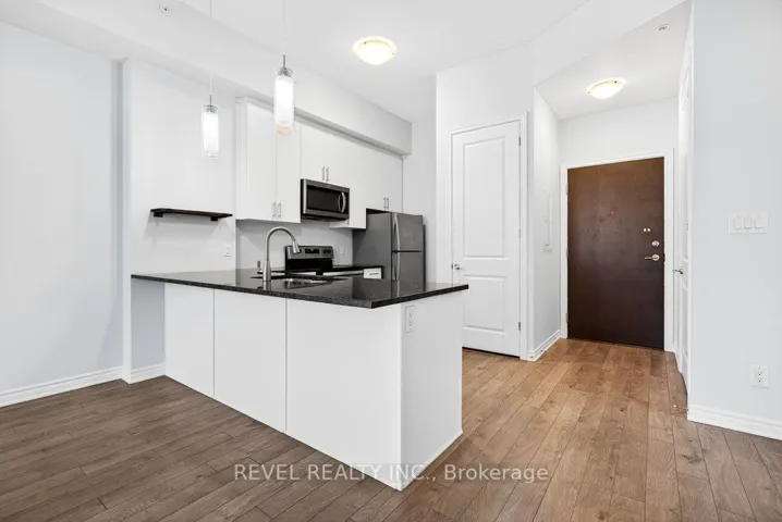 Boutique Penthouse Condominium At 150 Oak Park. This Spacious 738 Square Foot + Private Patio 1 Bed 1 Bath Unit Boasts Partial Lake & Park Views Only Seen From The Top Floor. Walk Through The Front Doors & Notice The Natural Light & Quality Upgrades With Towering 10 1/2 Ft Ceilings, Huge Windows & 8Ft Interior Doors. This Home Also Features Granite Counters, Custom Breakfast Bar, Deep Soaker Tub, Extra Tall Kitchen Cupboards, Wide Plank Laminate Floors Through-Out And Custom Walk-In Closet. The Large Open Concept & Neutral Colours Continue To Impress With This Amazing Layout, In-Suite Laundry & Large Bedroom W/ Walk-In Closet. In The Building You Have A Modern Party Room W/ Patio On The Main Floor, Fully Equipped Gym & Pet Spa. Underground Parking & Storage Locker Included.