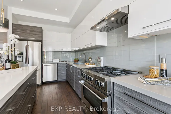 Modern family living in this stunning 2-storey detached home with 2,898 total sq. ft., 3 bedrooms, and 4 bathrooms. Just a 7-minute drive to both Long Branch GO and Mimico GO, a 15-minute walk to the lake and Colonel Samuel Smith Park, and only a 4-minute walk to Twentieth Street Junior School. Plus, you’re just moments from Lake Shore Blvd. The main floor showcases an open-concept layout with a formal living and dining area at the front of the home, complete with wide-plank hardwood, pot lights, large windows that fill the space with natural light, and sleek glass railings. At the heart of the home is a chefs kitchen featuring designer pendant lighting, a full-height light grey backsplash, elegant two-tone cabinetry with white uppers and charcoal grey lowers, quartz counters, premium stainless steel appliances, a gas range, and a large centre island with seating for four. Soaring 10′ ceilings extend through the kitchen and family room, where an electric fireplace adds warmth and style. The adjoining family room flows seamlessly to the outdoors with a walk-out to a private deck and fenced yard perfect for summer gatherings.Upstairs, the primary retreat offers a walk-in closet and a spa-inspired ensuite with heated floors, sleek vanities, modern tile work, premium fixtures, and a second electric fireplace for added comfort. Two additional bedrooms and a full bath complete the upper level.The finished lower level expands the living space with windows, two storage areas, and flexible room ideal for a home office, gym, media room, or play space, plus a 3-pc bath, direct walk-out to the yard, and a built-in garage with interior access and an EV charging outlet. Steps to Gus Ryder Pool and Health Club and quick access to QEW & 427 highways.