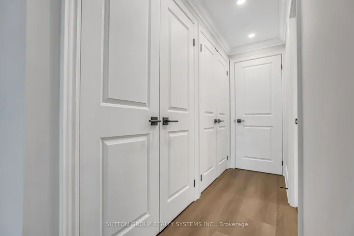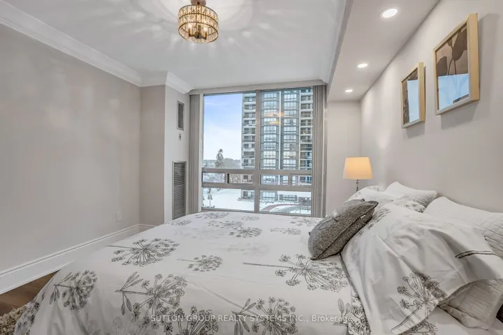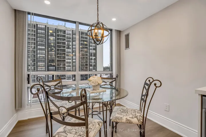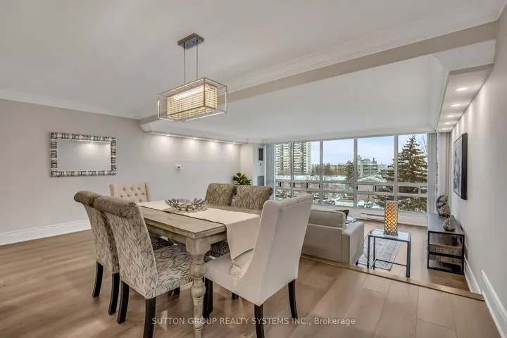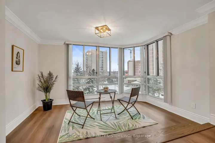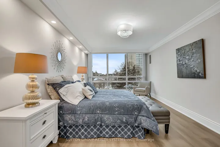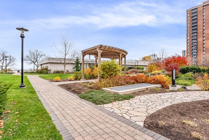Introducing a newly renovated condominium offering an exceptional blend of elegance and comfort. This corner suite spans approximately 1,830 sq. ft. The desirable split layout seamlessly integrates open-concept living and dining areas with a spacious eat-in kitchen. This residence features two generously sized bedrooms, two full bathrooms, and a versatile den, combined with a sun-drenched solarium that is perfect for a home office, reading nook, or creative space. Every detail has been curated with discerning taste in mind. The custom chef’s kitchen is a culinary masterpiece, featuring bespoke cabinetry, quartz c-tops, subway tile backsplash, pot lighting, under-cabinet light and brand-new stainless steel appliances, including a Bodega dual-zone wine fridge. The expansive living room radiates modern charm, while the primary suite offers a tranquil retreat with double custom closets and a spa-inspired ensuite. The second bedroom provides ample storage and equal comfort for family or guests. Elegant finishes abound: wide-plank laminate flooring t/out, smooth ceilings adorned with refined 7-inch crown mouldings, 7.25-inch baseboards, upgraded door casings and hardware, sleek interior doors, modern light fixtures, and screw-less wall plates subtly elevate the overall aesthetic. A full-size laundry room and abundant in-suite storage. This unit features an underground parking space and a private locker. Set within the prestigious Ennisclare II on the Lake community, this residence is nestled on five acres of immaculately landscaped grounds in the heart of vibrant Bronte Village. Residents enjoy access to an array of first-class amenities, including an indoor pool, fully equipped fitness centre, sauna, tennis and squash courts, party and billiards rooms, golf driving range and residents’ lounge.