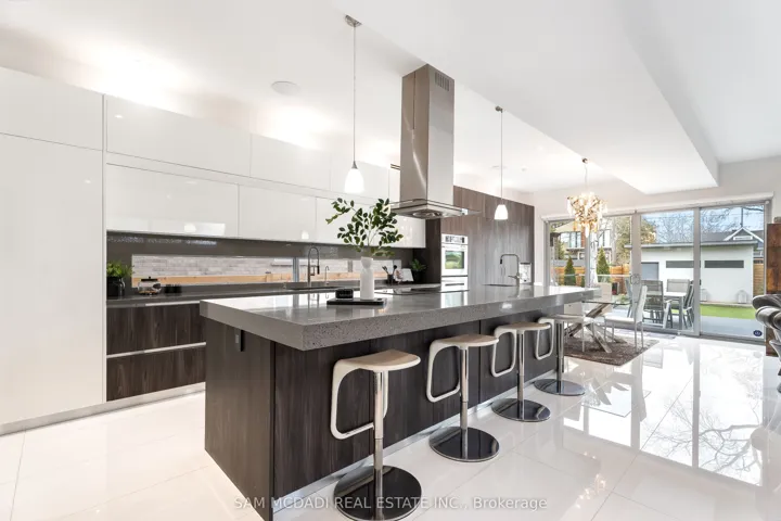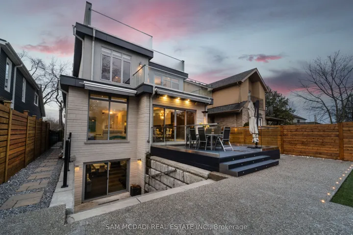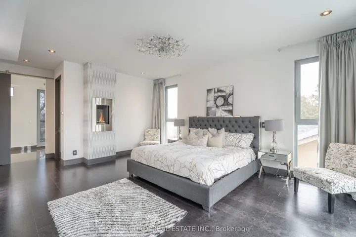 This spectacular, state-of-the-art contemporary designer home is located in the prestigious Lakeview community. The residence features 5-bedrooms and 6-bathrooms, offering over 5,000 SF of luxury living, finished to the highest standards. The main floor showcases white porcelain flooring and 10-foot ceilings throughout, complemented by a mahogany elevator with stainless steel doors and a striking mahogany floating staircase. The sun-drenched living room features a Napoleon Tureen fireplace and overlooks the expansive backyard. The immaculate kitchen is equipped with high-end appliances, full-length custom Italian cabinetry, quartz countertops, and a dramatic 14-foot centre island. Additional features include a built-in Kitchen Aid garburator, a built-in bar with automatic lighting, and a Thermador coffee station. The second floor offers 4 generously sized bedrooms and 3 beautifully appointed bathrooms. The third floor is dedicated to the primary retreat, featuring a walk-in closet with custom built-in shelving and a five-piece ensuite with a freestanding tub, heated flooring, and heated towel racks. This level also provides walkout access to an approximately 600-square-foot deck wired for a hot tub, with hot and cold water rough-ins for a bar and speaker rough-ins. Designer décor is showcased throughout the home. Additional highlights include a car lift in the garage and a private, award-winning backyard featuring a 13′ x 14′ three-tier designer fountain. Aluminum decking has been installed on all four balconies with underlay cushioning. The home is further enhanced by newly replaced heating and cooling systems, including a Lennox 135,000 BTU furnace and a 60,000 BTU, five-ton air conditioning system with a 4 zone management motherboard.
