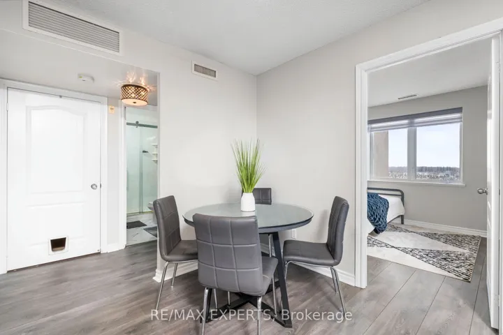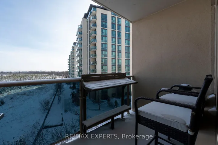 Welcome to an exceptional and stunning residence offering space, views, and lifestyle in perfect harmony! This impeccable 2+1 bedroom, 2-bathroom condominium delivers close to 1,300 sqft of thoughtfully designed living space, framed by sweeping views of the Claireville Conservation Sunlight pours through expansive windows, enhancing the sense of openness throughout the suite. The well-appointed updated wall to wall kitchen blends style and practicality, showcasing granite countertops, stainless steel appliances, generous cabinetry, and a pantry, all thoughtfully positioned to flow effortlessly into the main living spaces-perfect for both hosting and daily living. The open living and dining areas are bright and inviting, framed by expansive windows and direct access to the balcony, where serene, unobstructed ravine views offer a calming and picturesque setting.The primary suite offers a peaceful retreat, featuring a beautifully renovated four-piece ensuite, ample closet space (his and hers), and a large window with tranquil views of the surrounding greenery. The generously sized second bedroom includes an oversized closet and offers excellent versatility, while the spacious enclosed den can comfortably function as a third bedroom, home office, or guest suite. Additional highlights include in-suite full-size laundry, upgraded laminate flooring throughout, stylish roller blinds in every room, one underground parking space, and two storage lockers for added convenience. Enjoy close access to scenic nature trails,shopping, dining, parks, transit, and major highway connections all within easy reach-offering the perfect balance of tranquility and accessibility. Residents enjoy a full suite of lifestyle amenities, including a library, gym, media and activity rooms, games and billiards spaces, guest accommodations (additional cost), and an impressive event room with stage and separate kitchen-perfect for hosting larger gatherings.