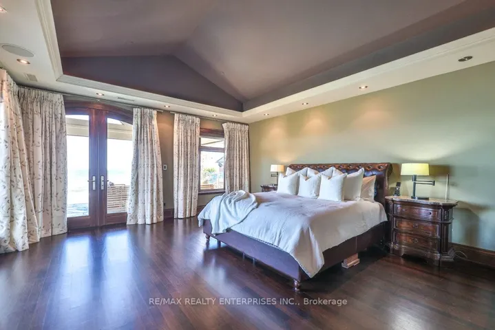 An Extraordinary Expression Of Waterfront Luxury, This Riparian-Right Lake Ontario Estate Is A Rare Architectural Masterpiece Nestled Within The Prestigious Enclave Of Rattray Park Estates. Set On Over Half An Acre Of Impeccably Curated Grounds, The Residence Offers More Than 10,000 Sqft Of Living Space, Where Water, Light & Design Converge To Create A Truly Immersive Lakeside Lifestyle. 5+1 Bdrms & 9 Baths Are Thoughtfully Positioned To Capture Breathtaking, Unobstructed Views Of Lake Ontario, The CN Tower & Toronto’s Iconic Skyline. A Pvt Elevator Connects All Lvls, While A Car Lift Delivers Your Prized Car To An Automotive Gallery Below. Comfort & Convenience Are Elevated W/ Heated Driveway, Patios & Interior Flooring, Complemented By A 15,000-Lb Marine Railway For Access To The Water. A Dramatic 2-Storey Foyer Crowned By A Barrel Skylight & A Cascading 3-Lvl Indoor Water Feature Sets The Tone For The Home’s Tranquil, Water-Inspired Design. The Main Lvl Unfolds W/ Rich Black Walnut Detailing & A Striking Dbl-Sided Freshwater Aquarium Separating The Living & Family Rooms. Designed For Refined Entertaining & Relaxed Family Living, The Space Flows Into A Chef’s Kitchen Appointed W/ Granite Countertops, Sub-Zero, Wolf, & Miele Appls & W/O To Multiple Lake-View Terraces. A Formal Dining Room W/ Gas-Lit Chandelier F/P & B/I Speakers, Along W/ A Sophisticated Home Office Featuring Custom Maple Built-Ins & A Coffered Ceiling, Complete The Lvl. The Primary Suite Is A Pvt Retreat, Offering A Lakeside Terrace, Dual W/I Closets & A Spa-Inspired 5-Pc Ensuite W/ Steam Shower & Gas F/P. Each Addn’l Bdrm Enjoys Its Own Ensuite & W/I Closet. The Lower Lvl Rivals A Pvt Club, Featuring A James Bond-Inspired Lounge, Theatre, Fitness Studio, Temperature-Controlled Wine Cellar & A Full Spa W/ Steam Room & Sauna. Outdoors, A Resort-Calibre Setting Unfolds W/ An Infinity-Edge Saltwater Pool, Hot Tub, Outdoor Kitchen, Fire Pit & Multiple Seating Areas.