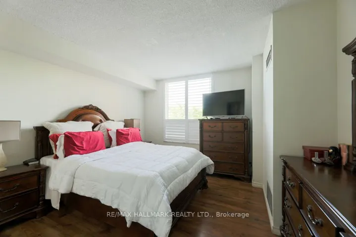 This exceptional suite showcases one of the most desirable floor plans in the building. With a spacious layout of 800 plus square feet, it features a well designed one bedroom plus den configuration that maximizes natural light and living space.The modern kitchen is both practical and aesthetically pleasing, equipped with stainless steel appliances and a convenient breakfast bar. Elegant hardwood flooring throughout the unit enhances its warmth and sophistication. The generously sized bedroom includes a walk-in closet and an updated, spa-like four-piece bathroom, providing a tranquil retreat. Additionally, the suite offers the convenience of a private ensuite laundry facility.This is an excellent opportunity for first-time buyers, downsizers, or investors, with one designated parking spot and an owned locker for extra storage.Residents benefit from a wide range of outstanding amenities, including an indoor pool, hot tub, sauna, gym, library, party room, games room, outdoor patio, and bike storage. The presence of a dedicated security guard contributes to a safe and secure living environment.Furthermore, this prime location allows for easy access to public transportation, esteemed schools, parks, major highways, the picturesque Humber River, and scenic trails. This combination of features renders the property a highly valuable option for individuals seeking quality living within a vibrant community.