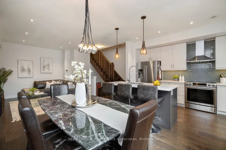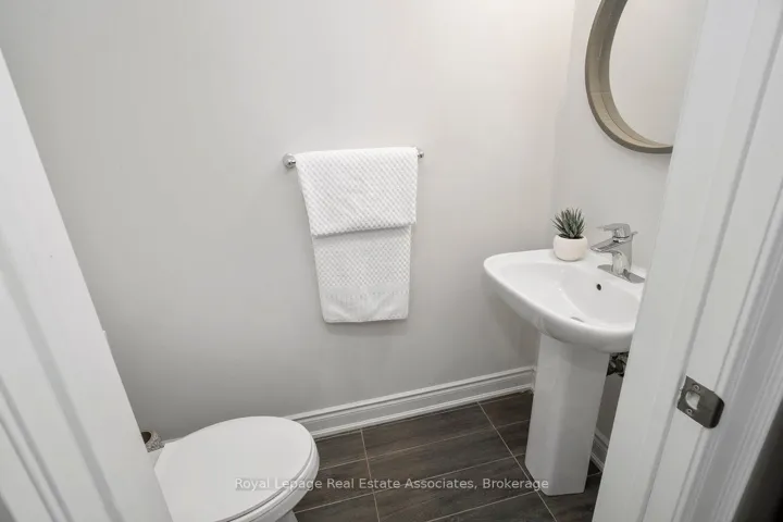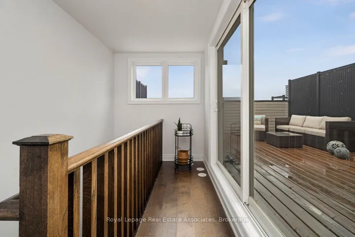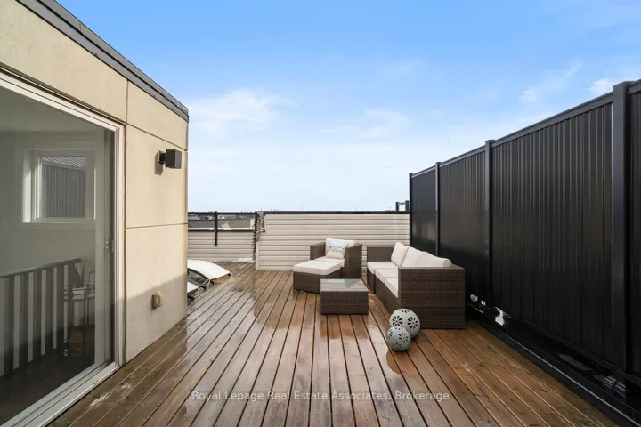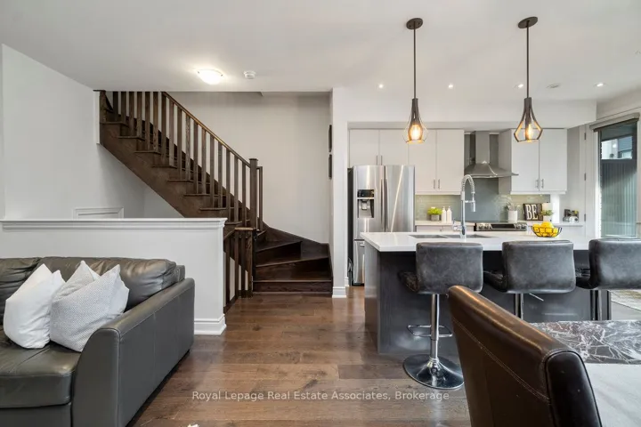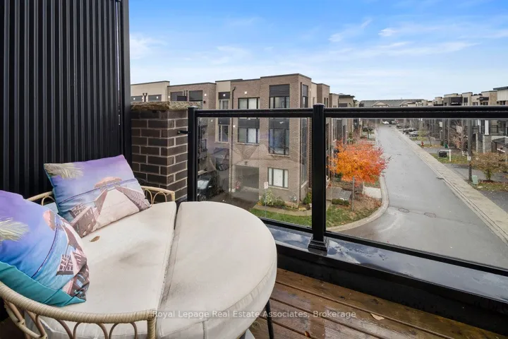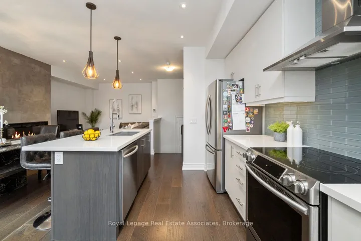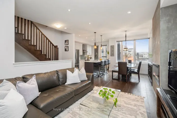 Welcome to 3076 Cascade Common, a beautifully upgraded 2-bedroom, 3-storey townhome located in Oakville’s desirable Joshua Meadows community. Offering approximately 1,310 sq ft of living space plus an estimated 412 sq ft private rooftop terrace, this home is perfect for entertaining or relaxing with prime south and west-facing views. The main level features 9 ft ceilings with pot lights on dimmers and a seamless flow from the modern kitchen to the dining and living areas. The kitchen boasts stainless steel appliances, a large island with built-in sink and seating, quartz countertops, under-cabinet lighting, and a glass tile backsplash, and offers a walkout to a private balcony – ideal for morning coffee or evening unwinding. The living area is complete with an electric fireplace finished in modern concrete. Additional highlights include $47,000 in builder upgrades upon construction (2017), such as premium hand-scraped solid white oak hardwood floors with an elegant cashmere finish throughout, upgraded stairway spindles, and thoughtful design touches that elevate the home’s style and comfort. The private rooftop terrace is a true retreat, featuring gas and water hookups for BBQs, outdoor dining, and gardening. Enjoy the quiet setting within walking distance to parks, shops, and local amenities. William Rose Park is just steps away, offering tennis, pickleball, baseball, splash pad, and more. Conveniently close to trails, restaurants, GO Transit, and Oakville Trafalgar Memorial Hospital. Monthly POTL fees of $64.67 cover road maintenance and garbage removal. Don’t miss this opportunity to own a stylish, well-maintained home in one of Oakville’s most sought-after neighbourhoods – Joshua Meadows!
