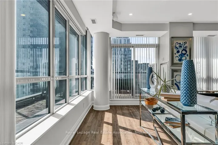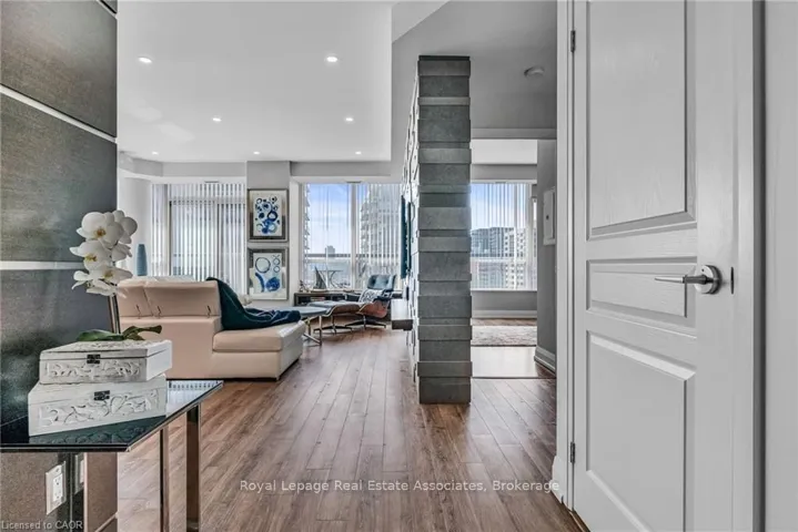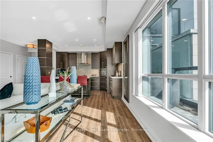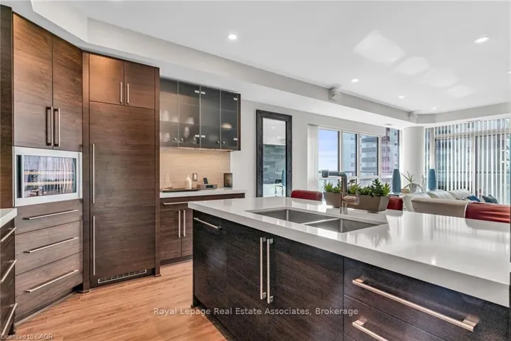 Suite 609 at 1 Hurontario is a fully renovated corner residence offering unobstructed south views of Lake Ontario, glowing westerly sunsets, and a rare wrap-around terrace that truly sets this suite apart. Floor-to-ceiling windows flood the home with natural light, while the open-concept layout is designed for effortless everyday living and entertaining. The modern chef-inspired kitchen features integrated AEG appliances, a wine fridge, sleek cabinetry, and clean contemporary finishes. Premium vinyl flooring flows through the main living space, with high-end laminate in both bedrooms for warmth and durability. The spacious primary suite is a private retreat, complete with a spa-like renovated ensuite, featuring a steam shower. The second bedroom offers exceptional flexibility with a custom queen-size Murphy bed, ideal for guests or a home office without compromise. Located in a well-managed, adult-friendly building just steps to the GO Train, waterfront trails, marinas, restaurants, and boutiques, this is Port Credit living at its finest – refined, walkable, and connected. Includes: Built-in AEG fridge, cooktop, wall oven, dishwasher, wine fridge, washer & dryer, 1 parking space, 1 locker.
