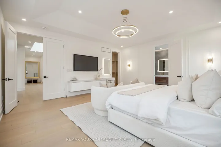 Step into a realm of unparalleled luxury at 14 Ranwood Drive, an architectural masterpiece that redefines modern living in the west part of Toronto. This distinctive residence with a living space of over 4800 square feet, harmoniously blends sophistication, comfort, and functionality, offering a lifestyle that is both grand and inviting. As you enter, be captivated by the soaring 9 ft ceilings that create an airy atmosphere, adorned with exquisite hardwood flooring that flows seamlessly throughout. Oversized solid-core wood doors and contemporary baseboards add an elegant touch, while energy-efficient LED lighting and stylish pot lights illuminate every corner of this beautifully designed home. The highlight is a custom gourmet kitchen, featuring state-of-the-art smart appliances, sleek quartz countertops, and a concealed walk-in butler’s pantry, perfect for both daily meals and lavish entertaining. The open-concept layout is anchored by a stunning floating staircase, leading you to a serene main-floor office-an invaluable space for productivity. Ascend to find five generously proportioned bedrooms, each designed with convenience in mind, with bath ensuites, ensuring both comfort and privacy for family living. The fully finished in-law suite, complete with its own kitchen and separate entrance, opens the door to endless possibilities-ideal for extended family stays or potential rental income. Outside, indulge in the meticulously landscaped lot featuring a sophisticated irrigation system and beautiful interlocked pathways, enhancing your outdoor oasis. This extraordinary home offers a unique lifestyle where elegance meets practicality. Embrace a living experience that must be seen to be fully appreciated-a truly rare offering in today’s competitive market. Minutes from Humber River Hospital.