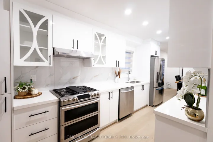Location, location, location! This stunning, fully upgraded home is ideally situated on a premium corner lot, offering exceptional space, privacy, and curb appeal. Just a 2-minute walk to Steeles & Mavis, this property delivers outstanding convenience in a highly sought-after area. The main floor features three spacious bedrooms, each complete with large windows and dedicated closet space. Recent upgrades include engineered flooring throughout the main floor, complemented by elegant matching oak stairs. The brand new kitchen is thoughtfully designed and flows seamlessly into a large dining room, making it perfect for entertaining. A bright and oversized living room enhances the open and airy feel of the home, with an abundance of natural light from multiple exposures. Adding tremendous value is the legal basement with a separate entrance, featuring dedicated entrance steps with overhead shade and a concrete walkway leading directly to the basement-providing safe, convenient, and private access. The property also boasts a large driveway with parking for three vehicles. Bright, modern, and move-in ready, this corner-lot home is an outstanding opportunity for homeowners and investors alike.