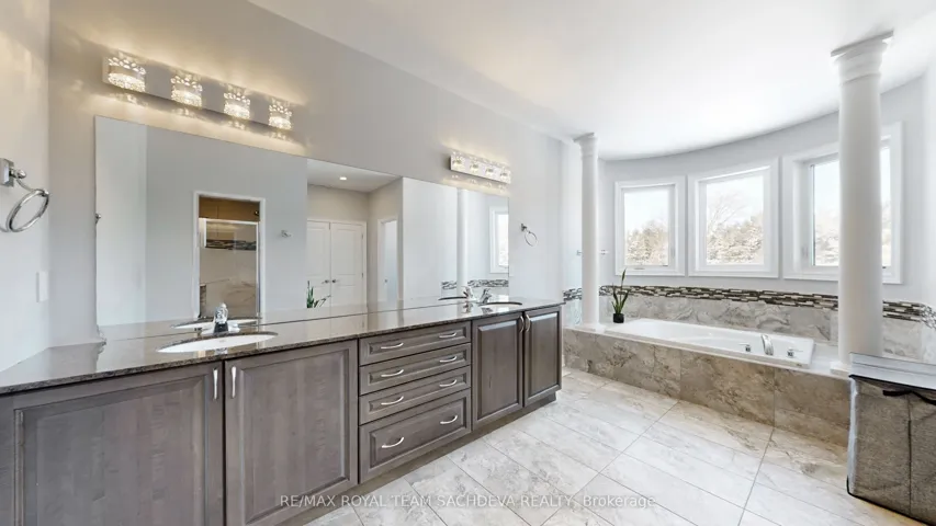 Welcome to this exceptional custom-built luxury estate offering over 6,535 sq. ft. of sophisticated living space on a spectacular 2.3-acre lot in the prestigious community of Palgrave. Designed to balance timeless elegance with modern open-concept living, this impressive residence features approximately 10-foot ceilings on the main level and soaring 18-foot ceilings in the family room, creating a bright, grand, and inviting atmosphere throughout.The expansive U-shaped chef’s kitchen is appointed with a centre island, granite countertops, stainless steel appliances, and a convenient servery-ideal for both everyday living and entertaining on a grand scale. A main-floor office with its own private entrance offers an excellent setup for working from home or meeting clients. The home features five spacious bedrooms, each with its own ensuite. The master and second bedrooms have been thoughtfully combined to create an oversized walk-in dressing room for the primary suite, complete with its own washroom. The approximately 3,000 sq. ft. walkout basement is an entertainer’s retreat, featuring a bar, gym area, large recreation space, and an additional bedroom with its own ensuite-perfect for guests or extended family. The owner has invested 95k custom high-end Lutron blinds, numerous new light fixtures, and extensive pot lighting throughout. The renovated laundry room adds further practicality with a dedicated sink.Outside, the property continues to impress with a 4-car garage, a circular driveway with parking for 20+ vehicles, and a beautifully landscaped, fully fenced backyard offering privacy and tranquility. Enjoy true resort-style living with a 20′ x 40′ heated saltwater pool-ideal for summer entertaining and family enjoyment.Conveniently located with easy access to Toronto via Highway 50 and Highway 9, this remarkable estate offers a rare combination of luxury, space, and functionality in one of Palgrave’s most sought-after settings.
