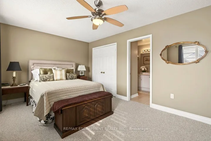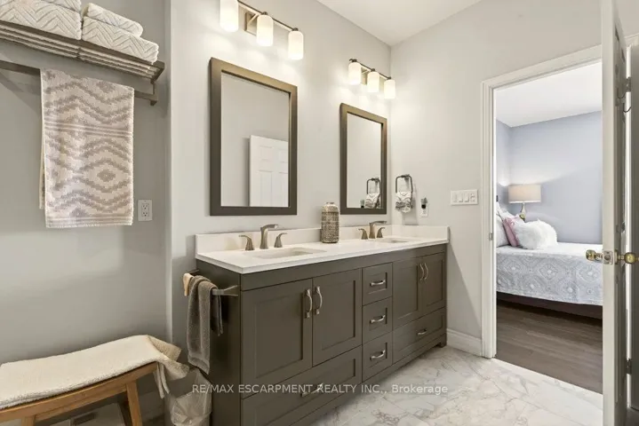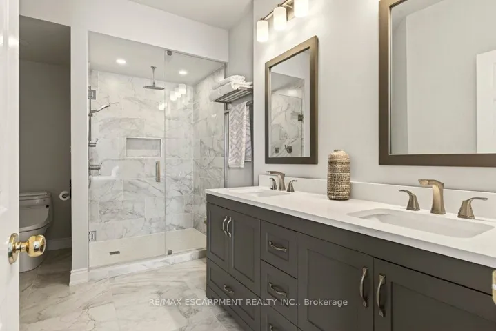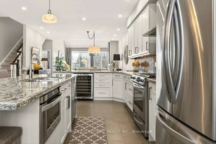 Absolutely stunning executive bungaloft in sought-after complex backing on to the 10th fairway of Millcroft Golf Club! 2,281 sq.ft. of beautifully updated open concept living space filled with natural light. Updated eat-in kitchen with stainless steel appliances (including gas stove and wine fridge), island, quartz countertops and glass subway tile backsplash. Spacious living/dining with vaulted ceiling, gas fireplace and walkout to private deck and patio with gas BBQ hookup and stunning golf course setting. Main level primary bedroom with a gorgeous spa-inspired 4-piece ensuite and walk-in closet. Upper level features a large loft/family room and a second bedroom with access to a 4-piece bathroom. Additional features and high-end finishes include 9′ ceilings on the main level, hardwood floors, California shutters, pot lighting, skylights and an updated furnace (2024)! Double drive and double garage with inside entry to main level laundry/mudroom. 2 bedrooms and 2.5 bathrooms.