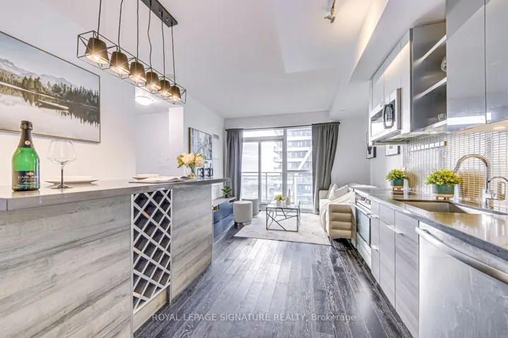 Welcome to urban living at its finest in this stunning 1-bedroom condo, perfectly situated in the vibrant Park Lawn area. Offering a seamless blend of comfort and convenience, this bright and airy unit features serene glimpses of the lake from your private balcony, perfect for morning coffee or evening sunsets. Modern Finishes: An open-concept layout with contemporary flooring, sleek kitchen cabinetry, stainless steel appliances, and a quartz countertop island, Abundant Natural Light, exceptional Amenities, Residents have access to a fitness center, outdoor terrace, party room, pool and more.
