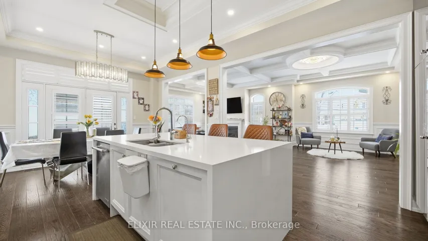 Welcome to a statement of refined luxury in the prestigious Riverwood community of Halton Hills. Set on a rare, premium corner lot, this exceptional 2018-built detached residence offers 4+1 bedrooms and 5 bathrooms, thoughtfully designed for elevated living with uncompromising attention to detail. The home’s stone and brick façade, paired with professionally installed interlocking in the front and backyard, delivers timeless curb appeal with effortless maintenance. Step inside to an atmosphere of sophistication highlighted by 10-ft custom coffered ceilings, rich premium hardwood flooring, designer wainscoting, and pot lights throughout. The expansive, sun-filled layout features separate living and family rooms with a defined dining space, creating the perfect balance between elegant entertaining and everyday comfort. The heart of the home is a chef-inspired gourmet kitchen, showcasing high-end Jenn Air stainless steel appliances, custom Cameo cabinetry, Caesarstone countertops, and a striking oversized island-designed for both culinary excellence and upscale hosting. A custom-stained staircase seamlessly matches the hand-scraped engineered hardwood flooring, leading to the upper level where luxury continues. Upstairs, discover four generously sized bedrooms, including a primary suite retreat with soaring ceilings, his-and-her closets, and a spa-like 5-piece ensuite. Each additional bedroom features a private or semi-private bathroom, offering hotel-style comfort and privacy for family and guests. The fully finished basement extends the home’s luxurious living space with an additional bedroom, a large recreation area, and an open-concept exercise zone-ideal for guests or a home wellness retreat. Located near parks, trails, top-rated schools, and community centers. This is a rare luxury lifestyle opportunity in Georgetown’s most sought-after neighborhood. Once you experience it, there’s no comparison