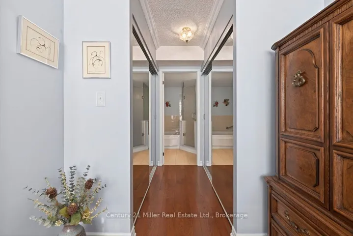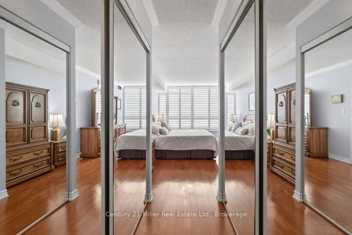 Welcome to elevated living at the Grande Regency in the heart of Burlington! Perched on the 16th floor and boasting the sought-after Richmond floor plan, this impeccable 2-bedroom plus den, 2-bathroom condo offers expansive views and an exceptional lifestyle just moments from the city’s vibrant waterfront and downtown core. Flooded with natural light, this beautifully maintained suite features rich hardwood floors throughout, crown moulding, and elegant California shutters. The thoughtfully designed layout boasts a spacious open-concept living and dining area – perfect for entertaining or relaxing. The large kitchen offers ample cabinetry and workspace with granite counters. The generous primary bedroom includes a private ensuite 4-piece bath with soaker tub and marble counter, abundant closet space, and laundry, while the second bedroom, den, and 3-piece bath provide flexibility for guests, a home office, or family living. The Grande Regency also features extensive amenities including an outdoor pool, tennis courts, library, party room, and concierge for safety. Step outside and find yourself just minutes from the charm and convenience of downtown Burlington, the scenic trails and waterfront at Spencer Smith Park, Maple Trail running right behind the building, boutique shopping, dining, festivals, and easy access to major highways and transit. Whether you’re downsizing or seeking an ideal urban retreat, this stunning 16th-floor residence offers comfort, style, and an unbeatable location. Don’t miss your opportunity to call this exceptional condo home!