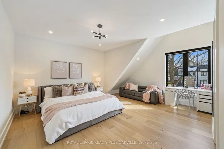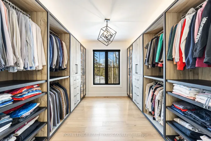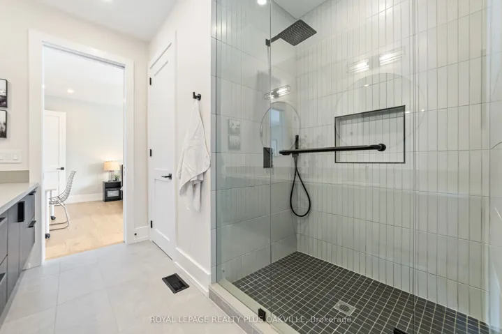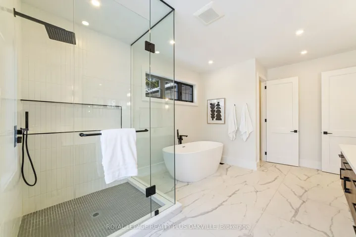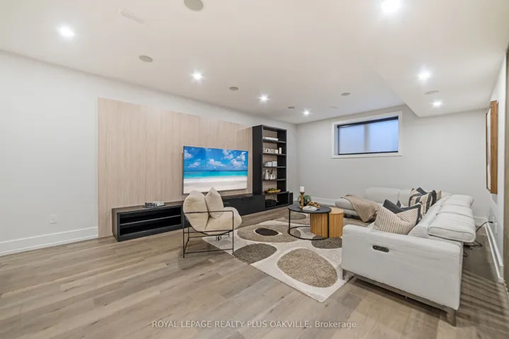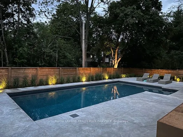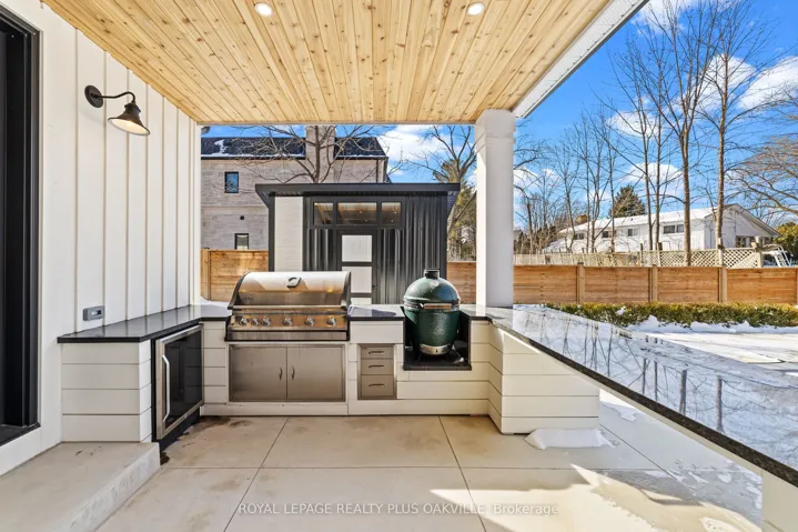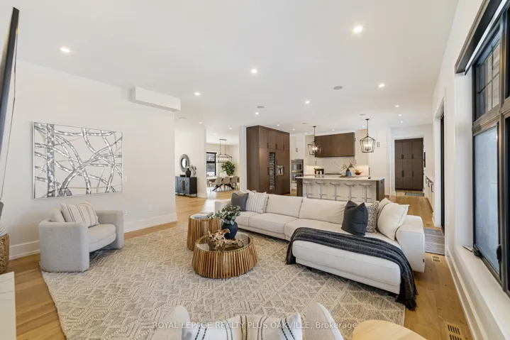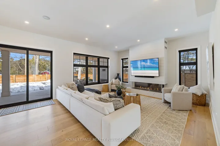 Stunning custom Modern Farmhouse (2022/2023) set on an expansive 85 x 133 ft lot on a quiet, family-friendly street just steps to the lake, Bronte Harbour, and Coronation Park. This exceptional residence blends sophisticated design with premium finishes and state-of-the-art functionality throughout. The open-concept main floor showcases soaring 10 ft ceilings, integrated ceiling speakers, designer farmhouse lighting, and automatic shutters. Sun-filled dining room with accent wall flows seamlessly into a showpiece chef’s kitchen featuring Thermador appliances, dual wall ovens, 36″ cooktop, integrated fridge, built-in coffee maker, dishwasher, and a Gaganeau wine fridge with 150-bottle capacity. The oversized island with custom storage and microwave drawer is complemented by a fully outfitted walk-in pantry with bespoke cabinetry and full-size stand-alone freezer. The family room is anchored by a dramatic three-sided 60″ Napoleon glass fireplace with custom millwork. A private office, two elegant powder rooms, & a custom mudroom with backyard access complete the level. Upstairs offers 9 ft ceilings, skylit hallways, and four spacious bedrooms with walk-in closets and automatic shutters. The luxurious primary suite features custom barn doors, an expansive 12′ x 11′ dressing room, and a spa-inspired 5-pc ensuite. Two additional bathrooms, including a Jack & Jill, and a well-appointed laundry room provide exceptional convenience. The finished lower level adds approx. 1,500 sq ft of finished space with a gym, 5th bedroom, full bath, and recreation space with built-ins. Advanced HVAC, smart home integration, and ample storage complete the space. The private backyard oasis features a full-width covered living area with gas fireplace and outdoor kitchen with gas BBQ, heated saltwater pool with built-in bench, hot tub, cabana, professional landscaping, lighting, and irrigation. A heated, professionally finished double garage with Tesla charger completes this remarkable home.