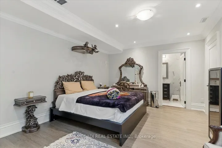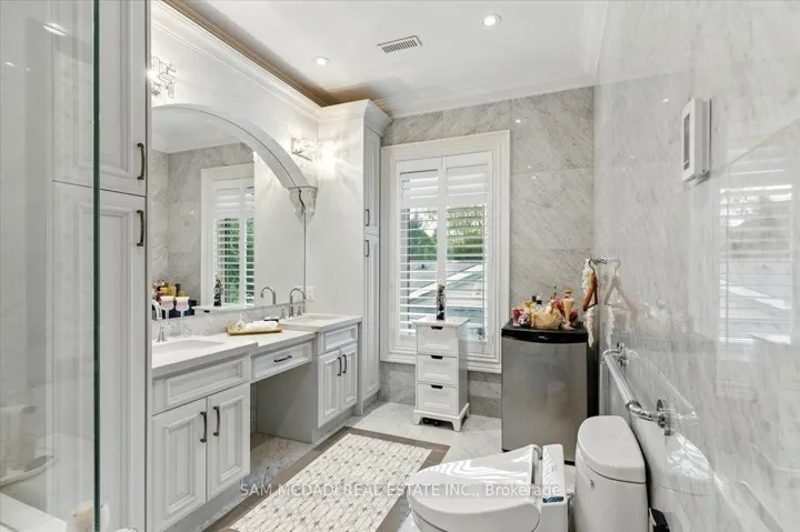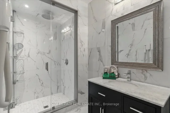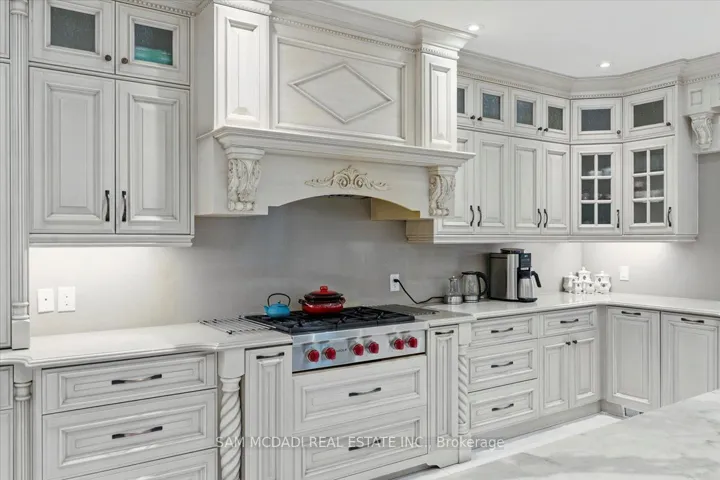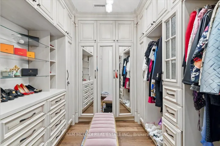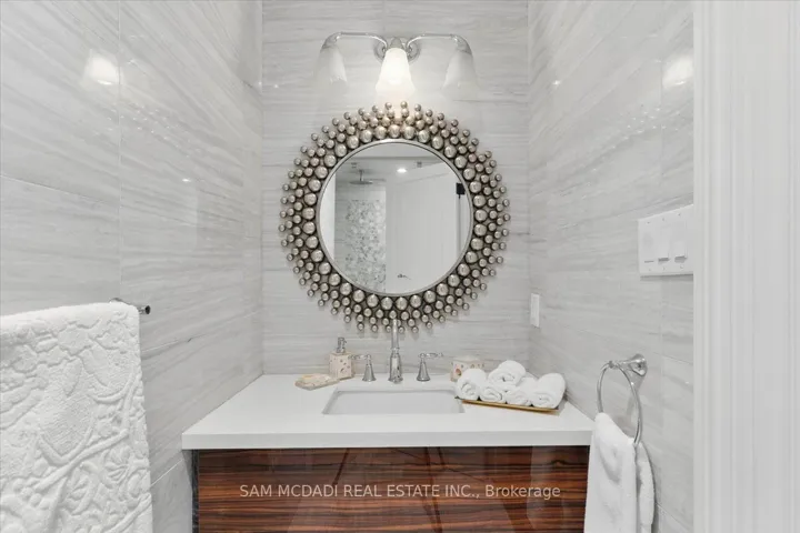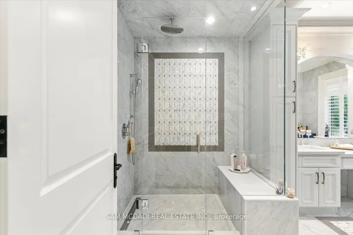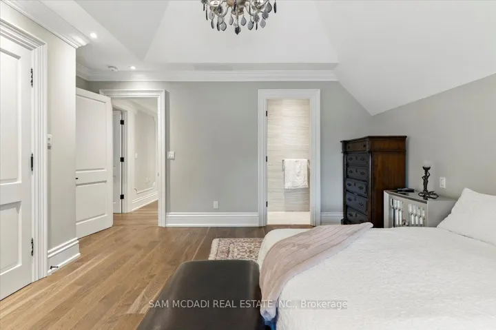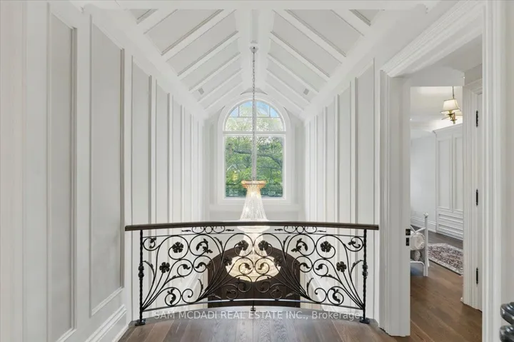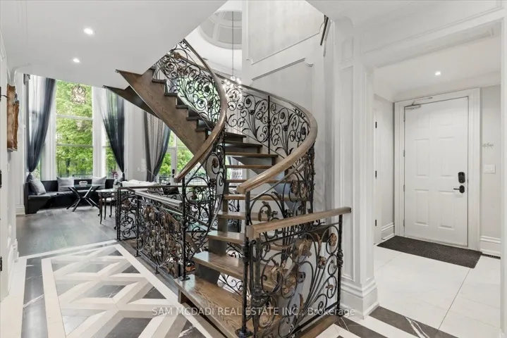 Surrounded by nature and prestige, this remarkable residence sits steps away from Rattray Marsh trails, Lake Ontario, and beloved local gems like Jack Darling Park and Meadow Wood Park. Perfectly situated on a sprawling 90×166 ft lot, this custom-built home backs onto lush green-space. Meticulously designed with over 7,000 sq ft of finished living space, this 4+2 bedroom, 7-bathroom estate captivates from the moment you arrive. A soaring 23-foot cathedral ceiling sets a striking tone, anchored by a solid wood staircase and drenched in natural light from floor-to-ceiling windows. Principal rooms flow with intention, from the living and great room to a spacious family room and dining, each detailed with rich hardwood, layered millwork, and timeless finishes. At the heart of the home lies a chef’s kitchen outfitted with top-tier stainless steel appliances, custom cabinetry, a generous island, and a full pantry, ideal for entertaining. Premium features continue throughout: heated floors, built-in speakers, tray ceilings, multiple fireplaces and a private elevator connecting every level. On the upper level, the primary suite is a true retreat, featuring elegant coffered ceilings, a boutique-inspired dressing room, a spa-style ensuite, and a private walk-out balcony with serene backyard views. Each additional bedroom is designed with comfort and privacy in mind, offering custom closets and ensuite access. The finished walk-out lower level expands the living space, offering two more bedrooms, two full bathrooms, a den, and a generous recreation space. Outside, mature trees frame a private backyard sanctuary, offering rare tranquility. Whether you’re enjoying morning coffee on the terrace or taking an evening stroll to the lake, this home delivers a lifestyle thats as elevated as its design.