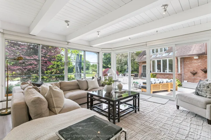 19 Lorraine Gardens is a rare estate offering the perfect blend of luxury, privacy, and resort-style living. Set on 1.676 acres, this 6-bedroom home is one of the largest remaining estate lots in all of Etobicoke. Backing onto protected green space with 60 feet of frontage on Mimico Creek, this property offers complete seclusion and an unmatched outdoor experience. The backyard is the true showpiece. A 42×22-foot heated salt water pool, outdoor kitchen, fire pit, sports court, in ground trampoline, shuffleboard, and multiple entertaining patios are surrounded by mature trees and manicured gardens. With no visible neighbours, deeded creek access, and extensive landscaping, it feels like a private resort in the city.Inside, the home offers 7,640 sq ft of beautifully designed living space plus 1,316 sq ft of internal storage. Vaulted ceilings, skylights, and oversized windows flood the main floor with natural light. The chef’s kitchen with premium appliances and a large granite island flows into the great room with a two-sided fireplace and backyard views. A sun-filled four-season sunroom, formal living and dining rooms, home office, laundry room, and second kitchen add comfort and flexibility. A separate wing with two bedrooms and a full bath perfect for extended family or a teen retreat completes the main level. Upstairs, the primary suite features vaulted ceilings, a walk-in closet, a second adjacent walk-in, and a well-appointed ensuite. Two additional large bedrooms offer bright, comfortable spaces with ample storage. The finished lower level includes a gym, a recreation room with walk-up to the backyard, and a private bedroom suite ideal for guests or live-in support. Located minutes from Sherway Gardens, Pearson Airport, and top-rated schools, this home offers a one-of-a-kind lifestyle.