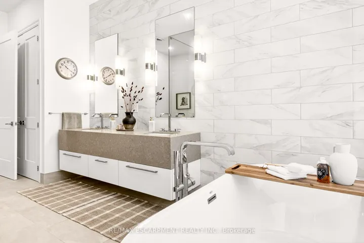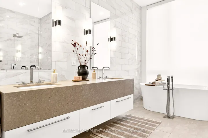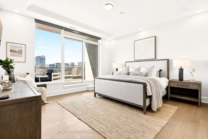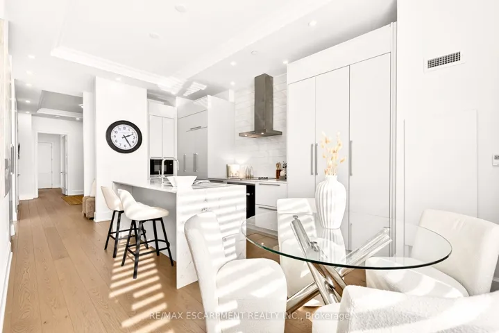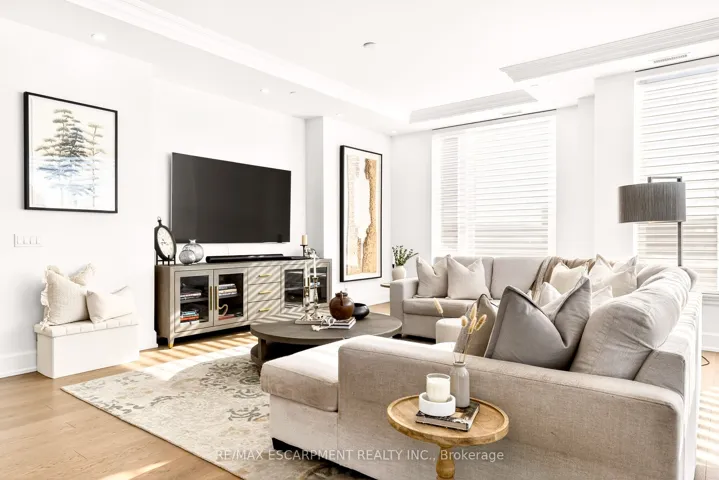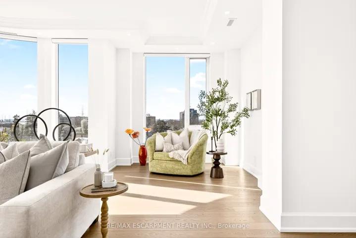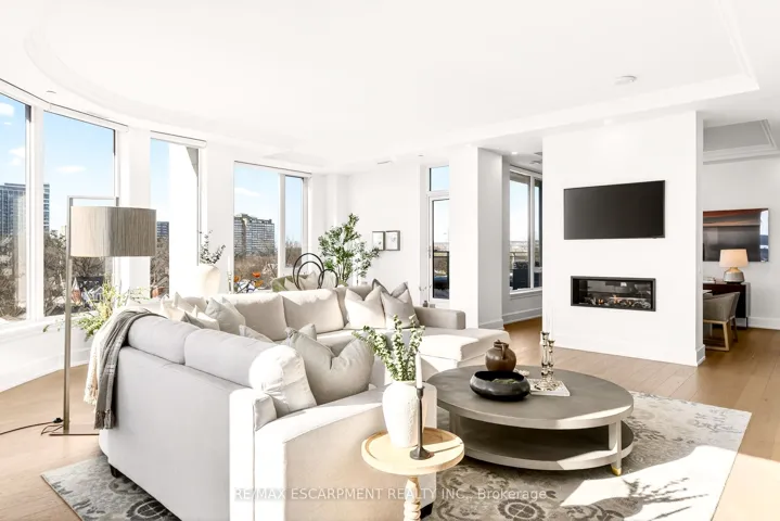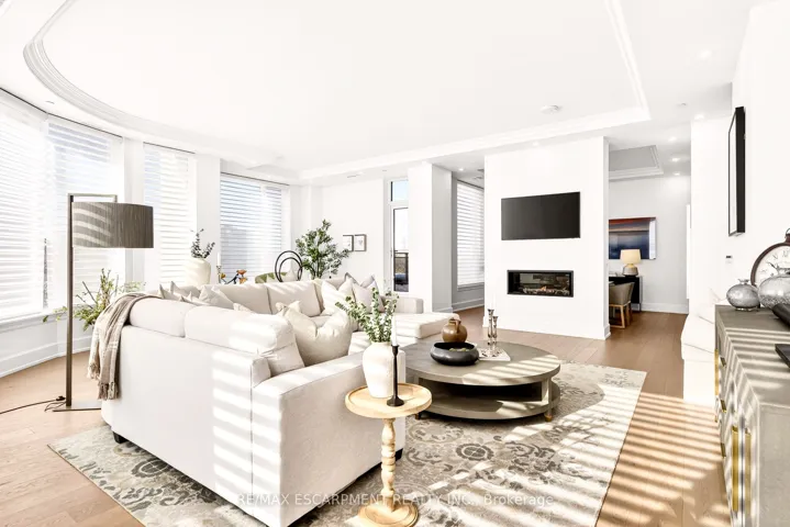Perched above the city at the prestigious Saxony, this extraordinary 2,578 sq. ft. penthouse redefines what condominium living can feel like.Here, life unfolds with space, light, and effortless elegance. Ten-foot ceilings and expansive principal rooms create an immediate sense of calm and grandeur, while walls of windows draw in the ever-changing sky. As evening falls, step onto the 300 sq. ft. southwest-facing terrace and watch the sun melt into the horizon, city lights beginning to sparkle below, a glass of wine in hand. The nearly 28-foot great room was designed for both intimate evenings and unforgettable gatherings. A double-sided fireplace flickers between living and dining spaces, adding warmth and ambiance whether you’re hosting a dinner party or enjoying a quiet night in. The open-concept kitchen, anchored by premium integrated appliances and generous prep space, becomes the heart of the home, where conversation flows as easily as the layout itself. The versatile 2+1bedroom design adapts beautifully to your lifestyle. The den is spacious enough to function as a true third bedroom, private office, or creative retreat. The primary suite is a serene sanctuary, complete with a walk-in closet and spa-inspired ensuite designed for slow mornings and restorative evenings. A thoughtfully appointed second bedroom ensures guests or family feel equally at home. Custom closets and automated blinds throughout reflect a level of finish that is both refined and practical. Beyond the suite, three oversized parking spaces, including an EV charger, and a large private locker provide rare convenience and flexibility. Residents enjoy concierge services, a fitness studio, and a roof top lounge that extends your living space even further. Steps to the lake, the Burlington Performing Arts Centre, boutique shopping, and celebrated dining, this penthouse offers the privacy and scale of a home paired with the vibrancy of downtown living – a place where every day feels elevated.