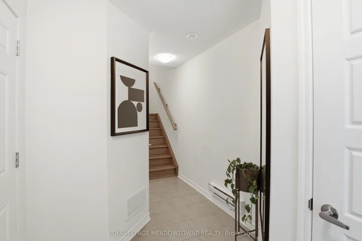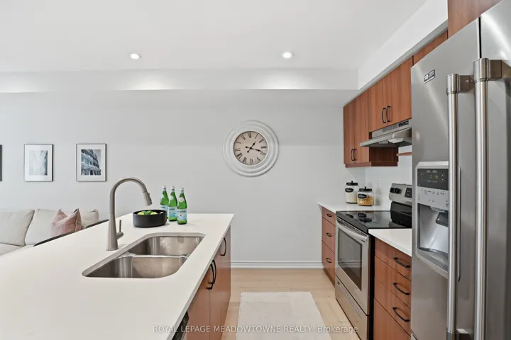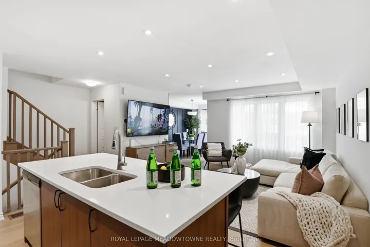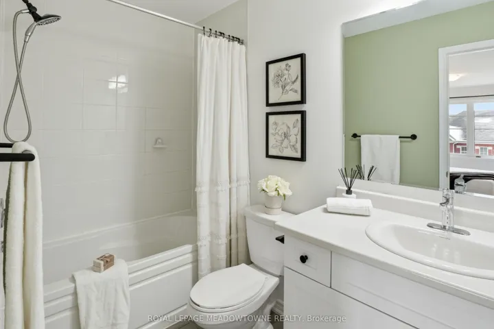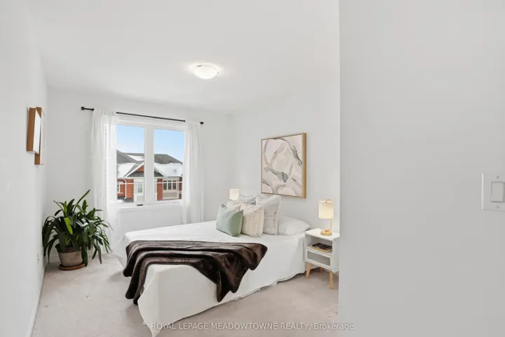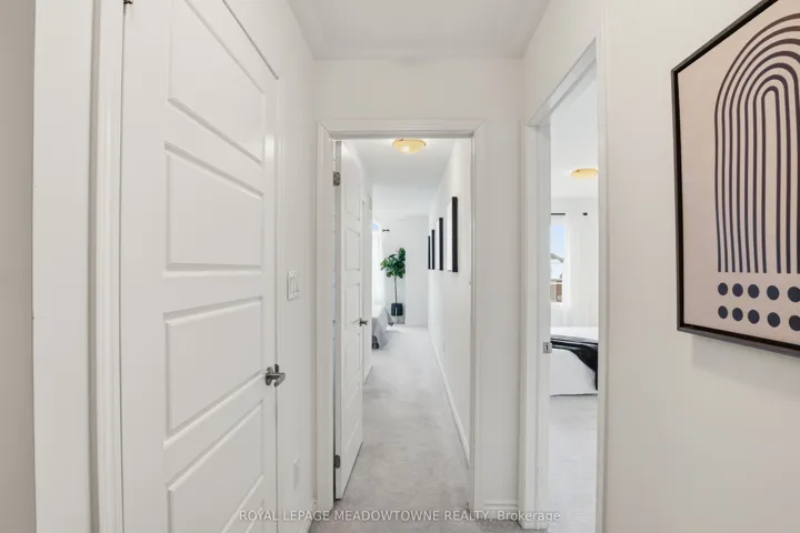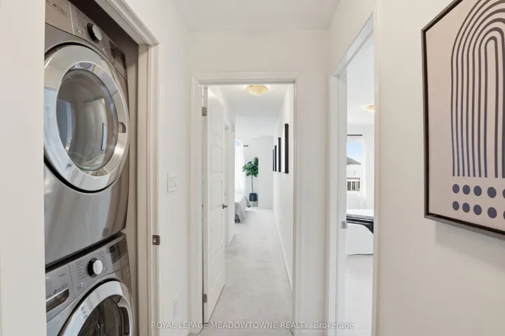 A MUST SEE – Executive, Model-Home-Like 3-Storey Townhome! Experience elevated living in this beautifully upgraded freehold townhome with striking curb appeal, an all-brick exterior, charming covered porch, oversized garage, and private driveway parking, all tucked away on a quiet, family-friendly street. Step inside to a bright, open-concept layout featuring rich hardwood floors, smooth ceilings, and pot lights throughout. The spacious living and dining areas flow seamlessly, creating the perfect setting for everyday living and entertaining. The chef-inspired kitchen is the heart of the home, complete with stainless steel appliances, light quartz countertops, ample cabinetry, and generous prep space. Step out to your private balcony off the dining room for morning coffee or evening relaxation. Upstairs, the lavish primary suite offers a large walk-in closet, 4-piece ensuite. The second suite also features a walk-in closet and private 3-piece ensuite – a rare and versatile layout that provides comfort and privacy for family or guests. Convenient third-floor laundry with upgraded full-size machines adds everyday ease. Filled with natural light and meticulously maintained, this home also includes carpeted bedrooms for added warmth and on-demand hot water for efficiency and comfort. Ideally located close to parks, schools, shopping, restaurants, highways, and the Milton GO Station for effortless commuting. Stylish, functional, and truly move-in ready – this exceptional home checks all the boxes!