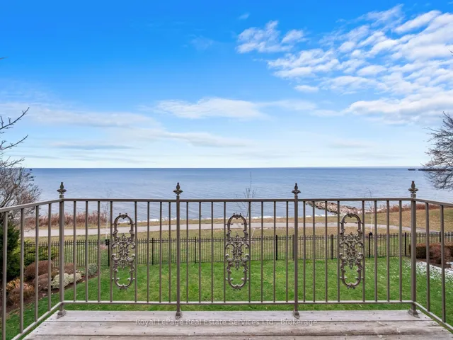 Spectacular lakefront property with 93′ frontage on Lake Ontario. Located on a quiet, mature cul-de-sac, this custom built, family home offers 4+1 Bedrooms, 3.5 Baths with over 2800SF above-grade + 1400 SF Finished Lower Level. Architecturally designed with wall-to-wall windows overlooking the lake, solid brick construction with clay tile roofing, this home was built to last. 9 and 10 ceilings on the main floor. Oak hardwood floors throughout both levels. Grand entrance foyer with oak staircase. Beautiful Living Room with fabulous antique marble fireplace surround with gas insert open to Dining Room with wall to wall patio doors to the terrace with incredible lake views. Fabulous Kitchen/Breakfast Room is a blank canvas with the perfect space to install the waterfront Kitchen of your dreams. Walk-outs to both decks and open to the the Family Room with stunning marble fireplace with gas insert. The main floor features a mudroom with side entry and inside entry from full-sized two-car garage. The Primary suite features oversized windows and a walk-out to second floor balcony with outstanding lake views, luxury ensuite bathroom and walk-in closet. Two more Bedrooms overlook the lake with oversized windows. The front Bedroom opens to a bonus room above the garage which could be handy as a Den or quiet retreat. The Lower Level has excellent ceilings height, good windows and features 1Bedroom, 3-Piece Bathroom, Recreation Room, Den, Laundry Room, storage and more. Beautifully landscaped and maintained property fully fenced with wrought iron gate access to the lake. Cobblestone driveway accommodates 4 cars. Outstanding value on Lake Ontario. A must see