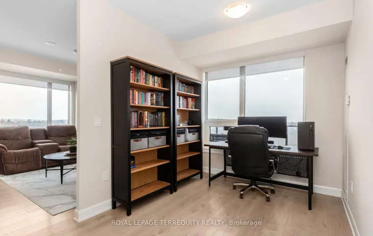 Rarely available, one of only 3 special suites in the building, corner end unit with no other units above; featuring large wrap around windows providing plenty of natural sunlight with east exposure and unobstructed views on the quiet side of the building. 760SF + private balcony + 2 parking spaces + storage locker. Super spacious 1Br+Den! Larger than some 2Br units. Den can be closed off and used as a sep office or Bedroom. This suite boasts high ceilings, upgraded stainless steel appliances, extended kitchen island, quartz countertops, glass shower drs, upgraded hardware/finishes throughout, laminate floors, modern finishes, keyless entry and smart living eco-friendly geothermal heating & cooling system. This suite has always been occupied by the original owner. Immaculate, freshly painted, like brand new! Move-in ready! The buildings high tech amenities include: virtual concierge, smart lock connect system, secure automated parcel management solution, meeting room/co-working space/lounge, fitness centre, yoga/movement studio, upscale party room, landscaped rooftop barbecue terrace, pet spa and visitor parking. Upper West Side Condominiums is ideally situated at the epicentre of Oakville’s vibrant Uptown Core, this premier location offers an unparalleled transit-oriented lifestyle within a sophisticated, high-density “Urban Village.” Residents enjoy easy access to elite retail anchors including Longo’s, Walmart, and Superstore, while benefiting from seamless connectivity via the Uptown Core Bus Terminal and the nearby Oakville GO Station. This strategic central hub provides rapid commuter access to Hwys 401, 403 & 407, placing Sheridan College, the state-of-the-art Oakville Trafalgar Memorial Hospital and Iroquois Ridge Community Centre just minutes away. Perfectly balancing urban convenience with natural tranquility, the area is enveloped by lush greenbelts and scenic retreats, including Postridge Park and the extensive Sixteen Mile Creek Trail system.